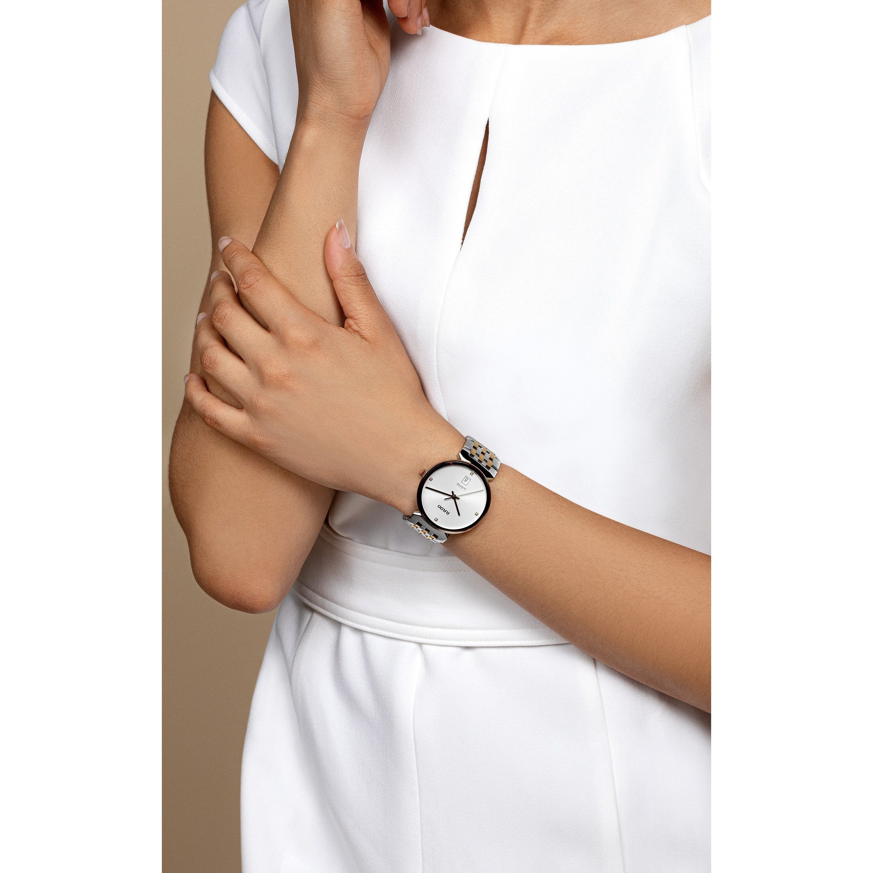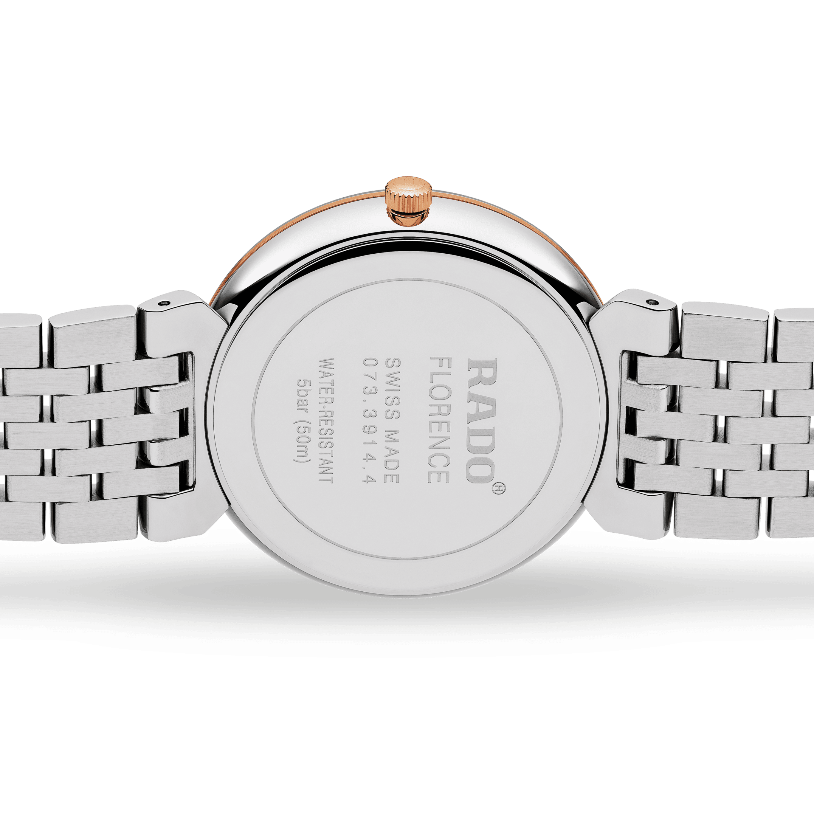 The harmonious design of the Rado Florence Classic calls to mind the elegant domes and towers of the city from which the collection takes its name. With quality quartz movements and innovative Rado edge-to-edge metallised sapphire crystal, these are Swiss-made pieces designed to stand the test of time. Rhodium-plated hands...