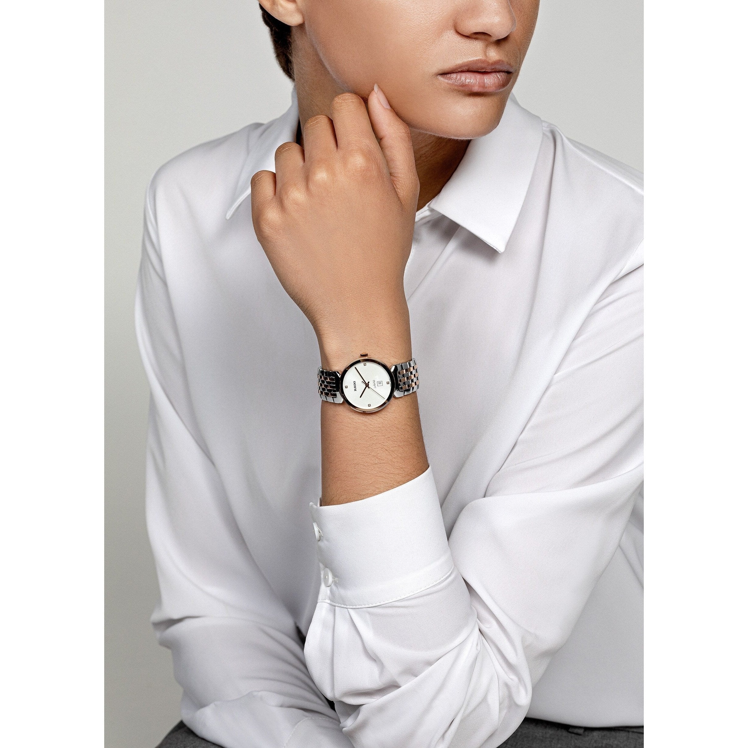 The harmonious design of the Rado Florence Classic calls to mind the elegant domes and towers of the city from which the collection takes its name. With quality quartz movements and innovative Rado edge-to-edge metallised sapphire crystal, these are Swiss-made pieces designed to stand the test of time. Rhodium-plated hands...