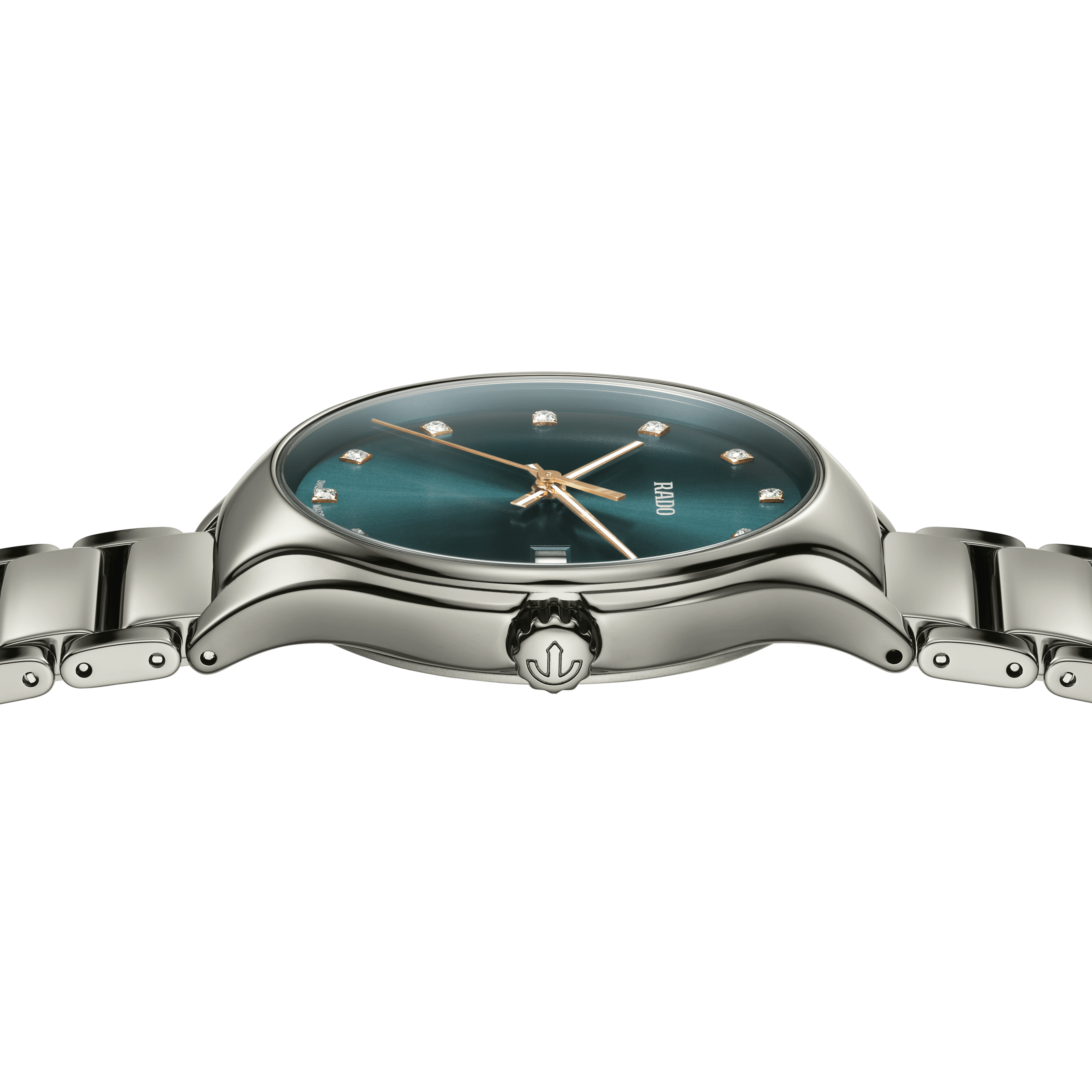 The True Quartz features a 40mm polished plasma high-tech ceramic monobloc case which matches perfectly with the dark turquoise dial. The dial with 12 diamonds is covered by a curved sapphire crystal. The rose gold coloured hands with white veneer are coated with white Super-Luminova® to ensure excellent visibility. The...