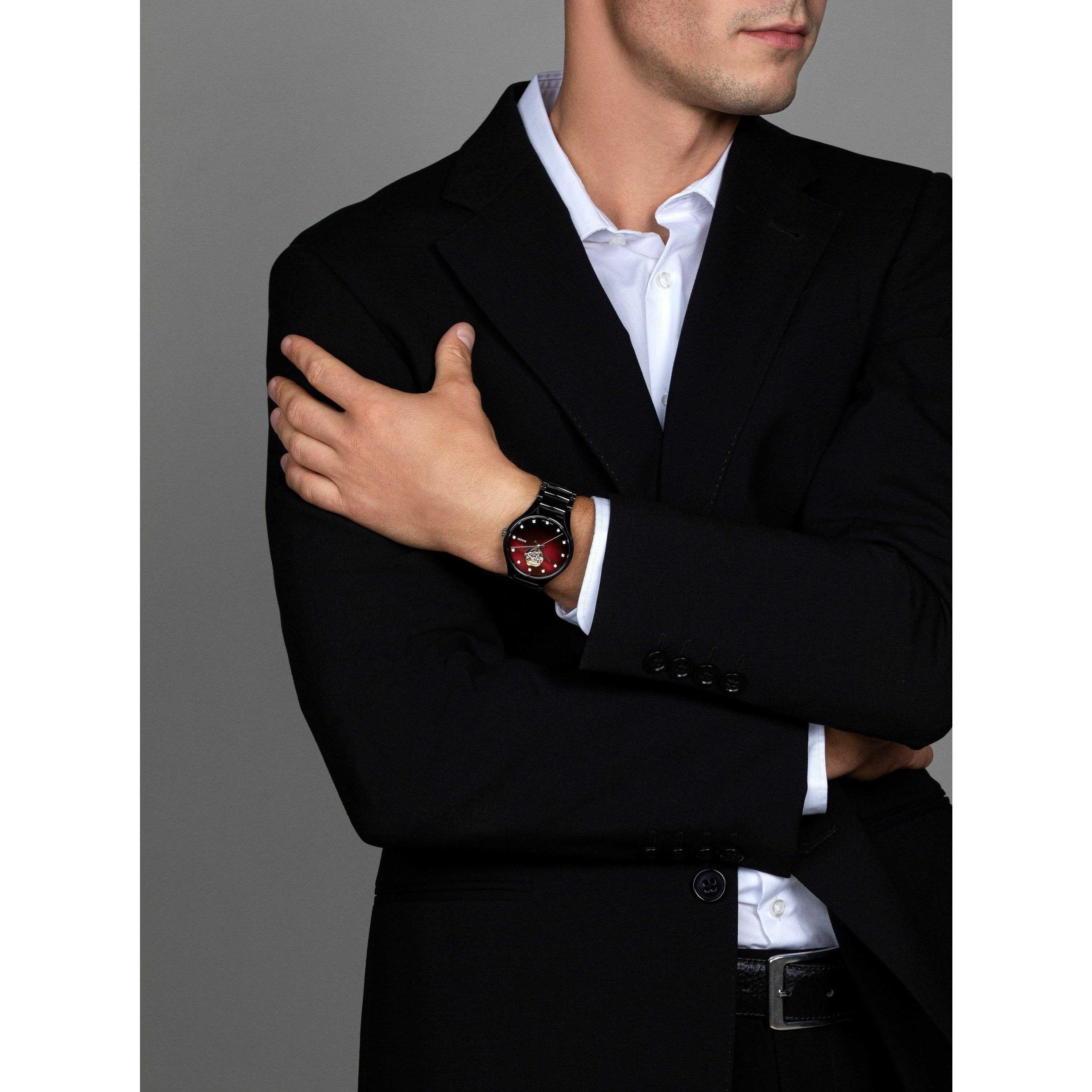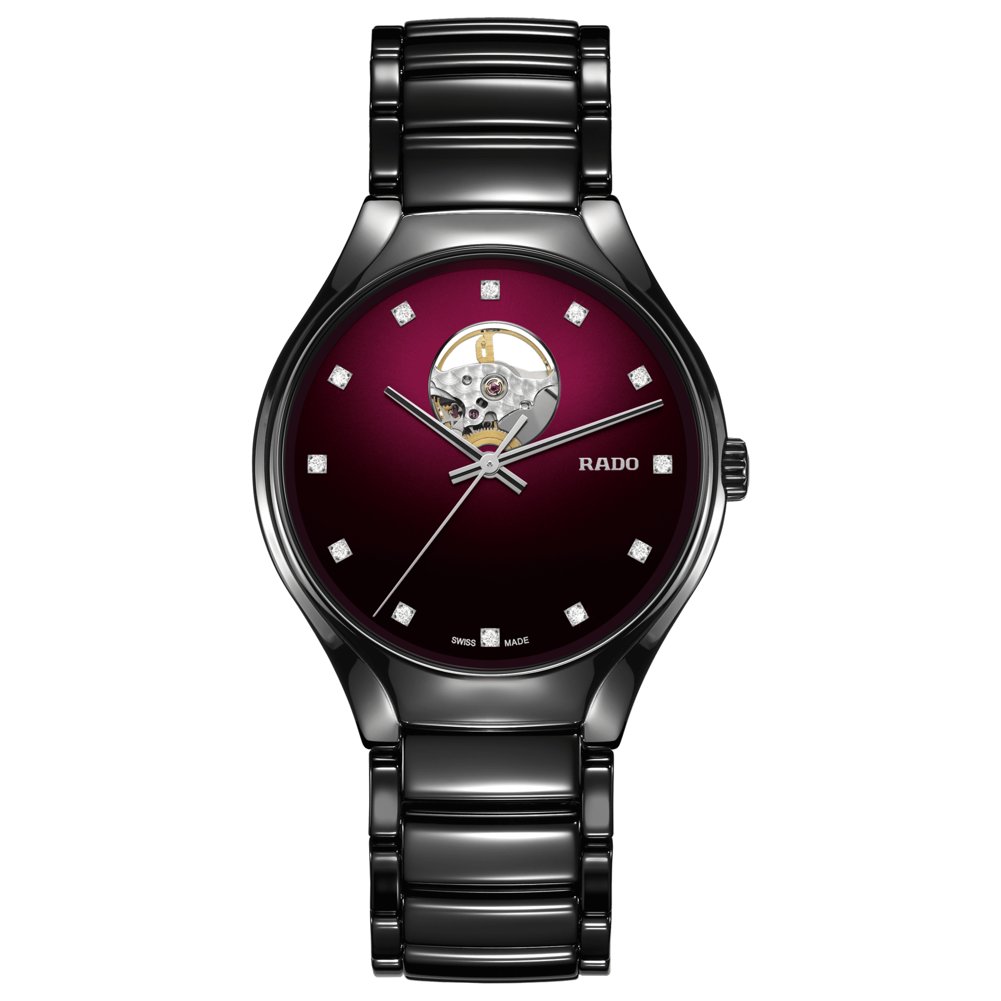 The True Secret Automatic has a particularly sensual effect, giving up its secret through a window in the deep red dial and permitting a glance at the balance spring, the oscillating heart of the mechanical movement. Twelve diamonds replace the numerals and signal pure luxury – a genuine declaration of love in red.