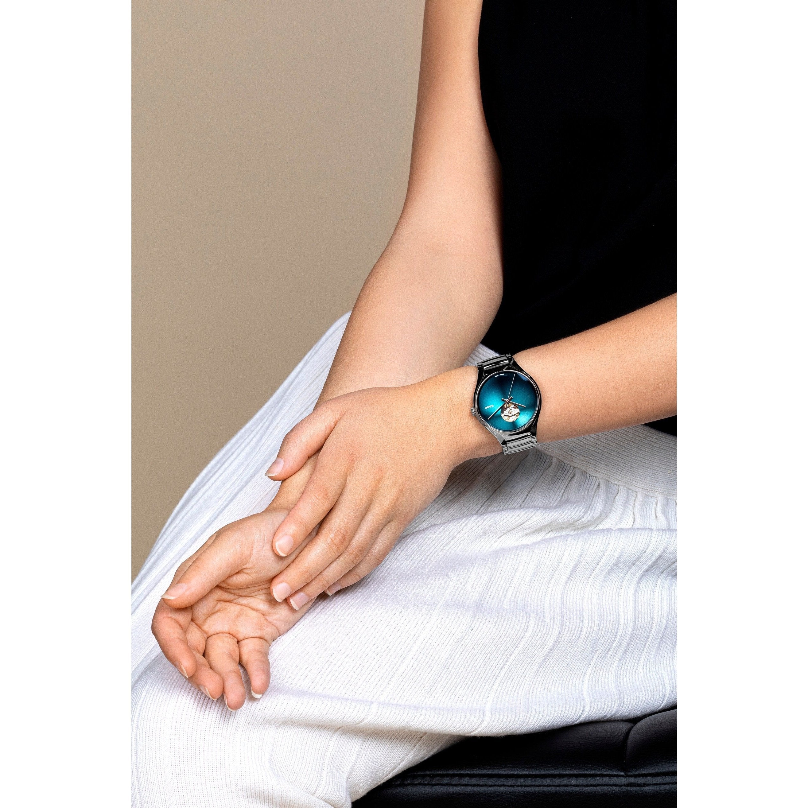 For all watch fans who desire something out of the ordinary but prefer cooler colours, Rado recommends the True Secret with an intense petrol dial. Combined with the metallic shimmer of plasma high-tech ceramic this version emits a mysterious coolness and uncanny, magical charm.