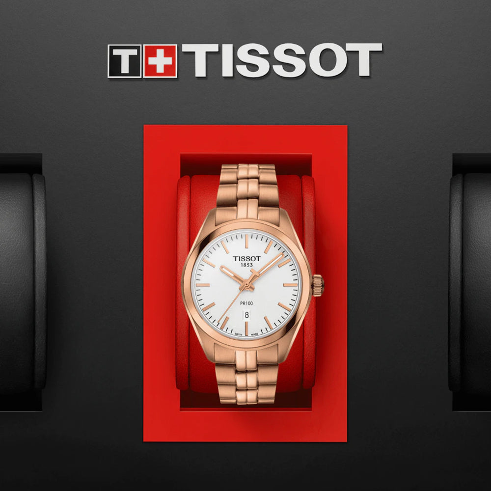 The Tissot PR 100 is a classic watch destined to be worn often and for every occasion. It features the simple and elegant face the collection is loved for, with the pared-back aesthetic symbolising luxury, quality and classic style.