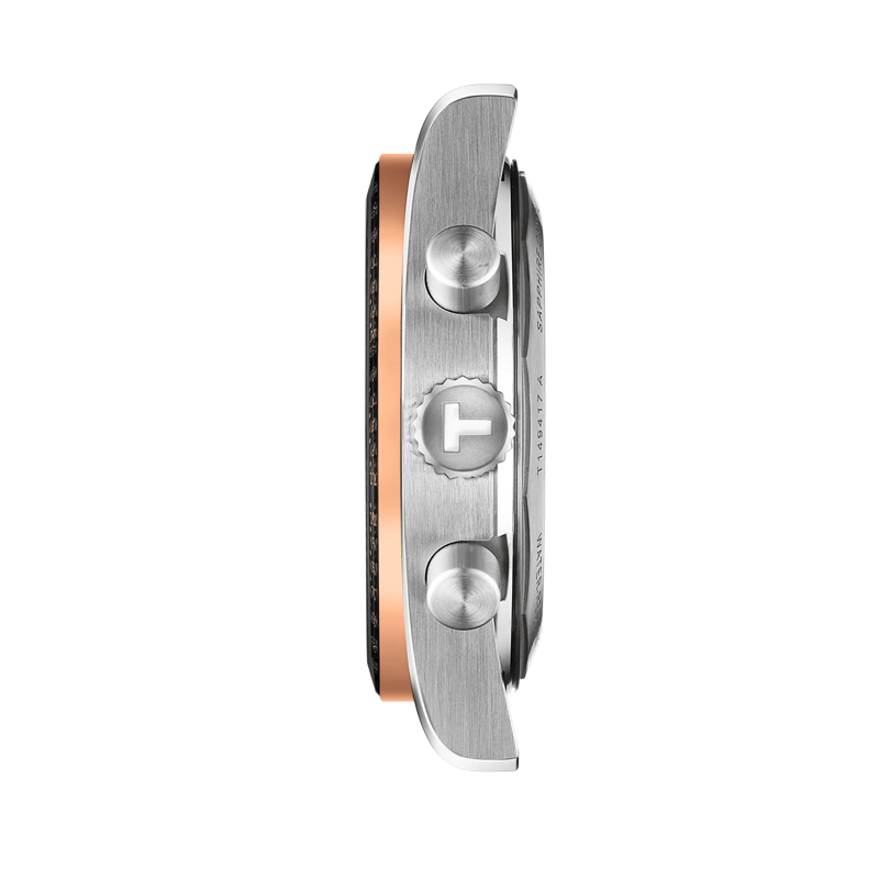 The Tissot PR516 Quartz Chronograph features a striking black dial complemented by rose gold PVD accents. With a 40mm bi-colour stainless steel case and scratch-resistant sapphire crystal, it couples style with durability. This Swiss Quartz chronograph movement ensures precision in every moment. Its interchangeable quick-release bracelet offers versatility for any...