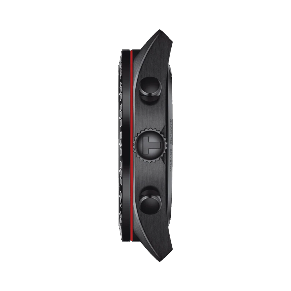Add a tinge of subtlety to your look with this men's watch from the T-Sport collection by Tissot. Encased in a 45 mm case, the round dial is protected by a sapphire glass. It features chronograph functionality and a crown for time adjustment. The strap is crafted with care using...