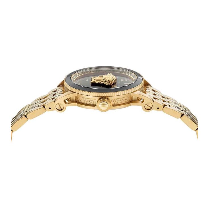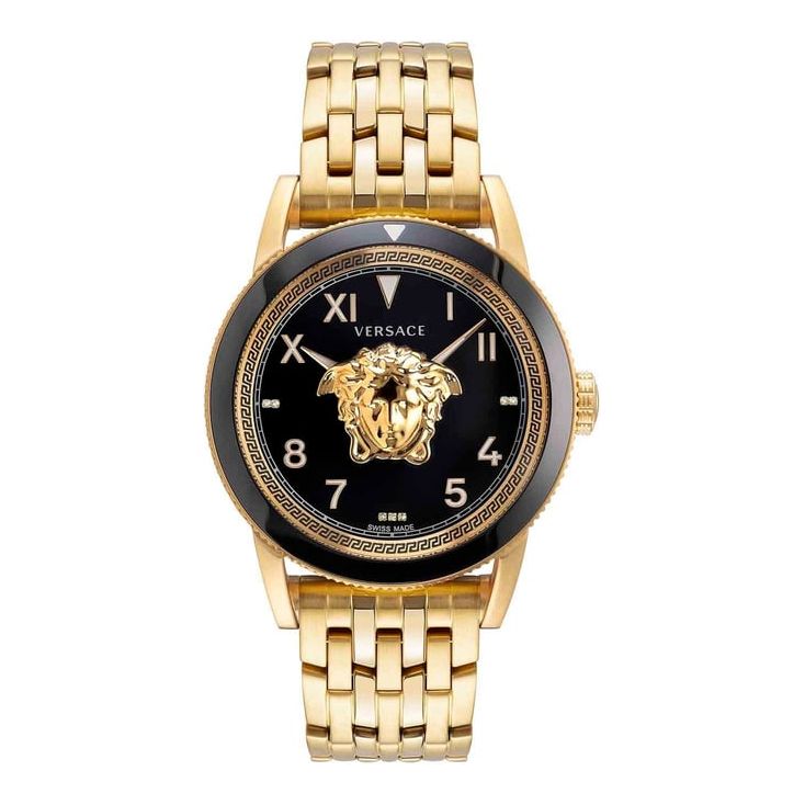 A new iconic and masculine timepiece that rediscovers the beauty and the charm of the Medusa floating on the dial. The Versace men's collection is empowered by Medusa as a key icon combined with bold indexes and Roman numbers. The stainless steel bracelet is highlighted by the Greca motif, the...