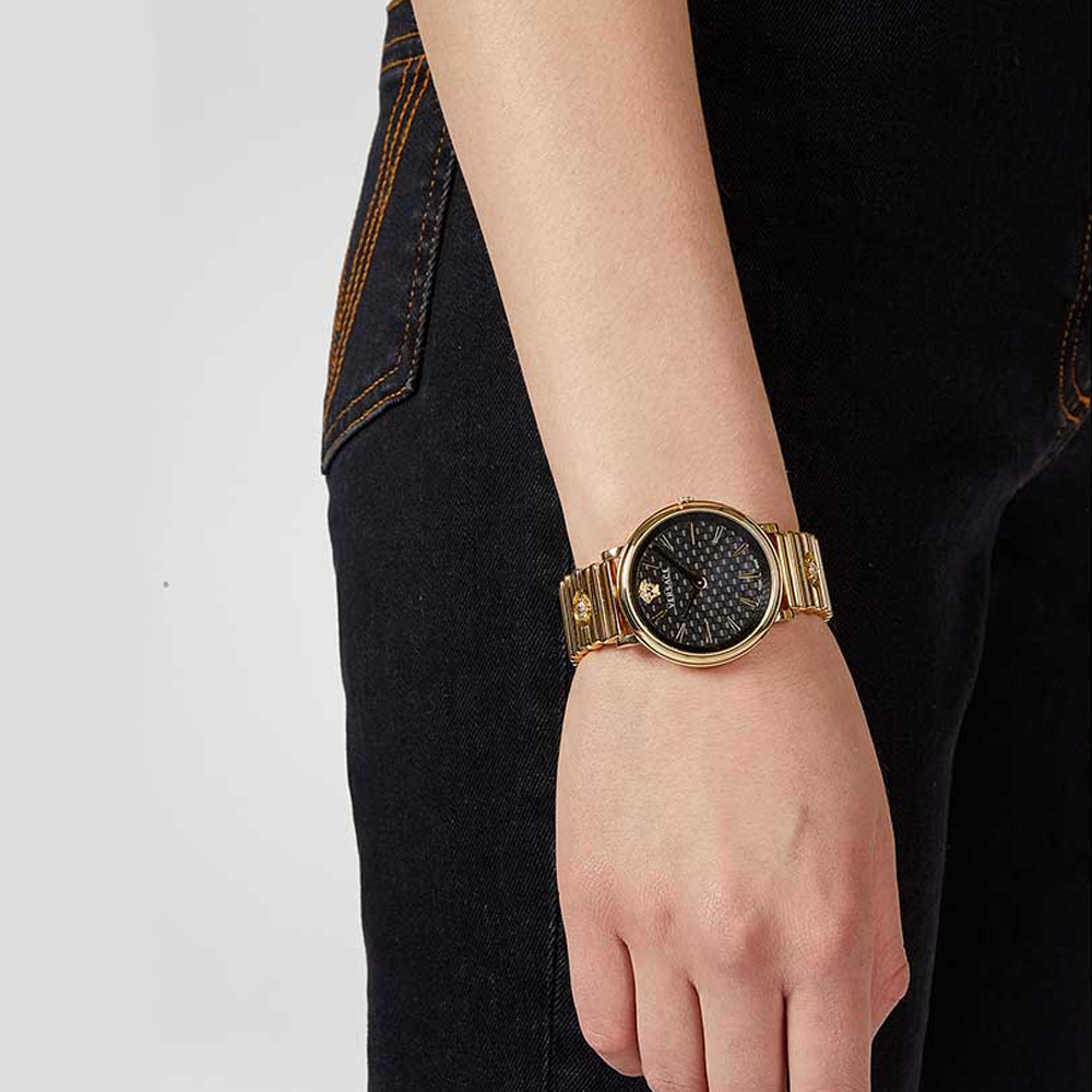 Versace VE8101519 V-Circle Round Analog Black Dial Ladies Watch