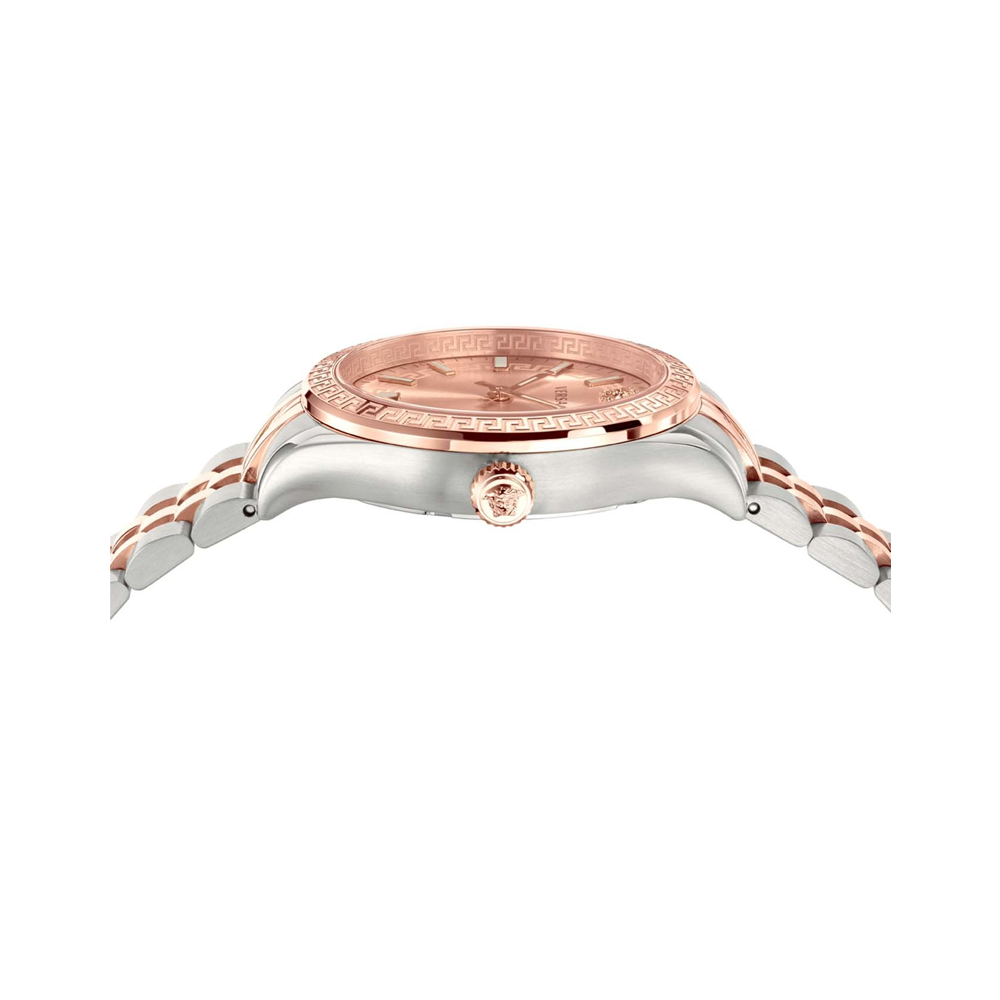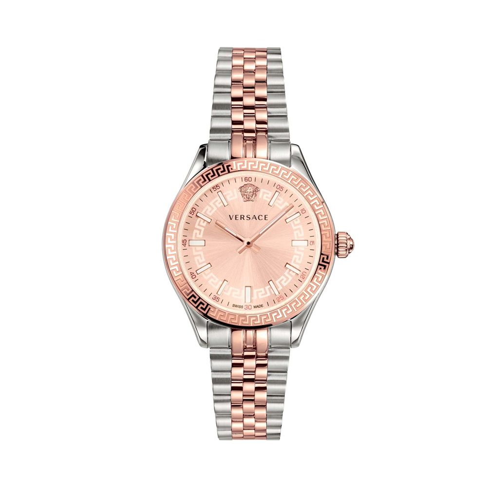 Hellenyium is for the Versace woman who wants to feel elegant and timeless chic. Its look recalls the iconic symbols of the brand such as the Greca engraved on the top ring and the medusa 2D at 12th-hour. The strap proposal is sporty urban while the band confers a look...