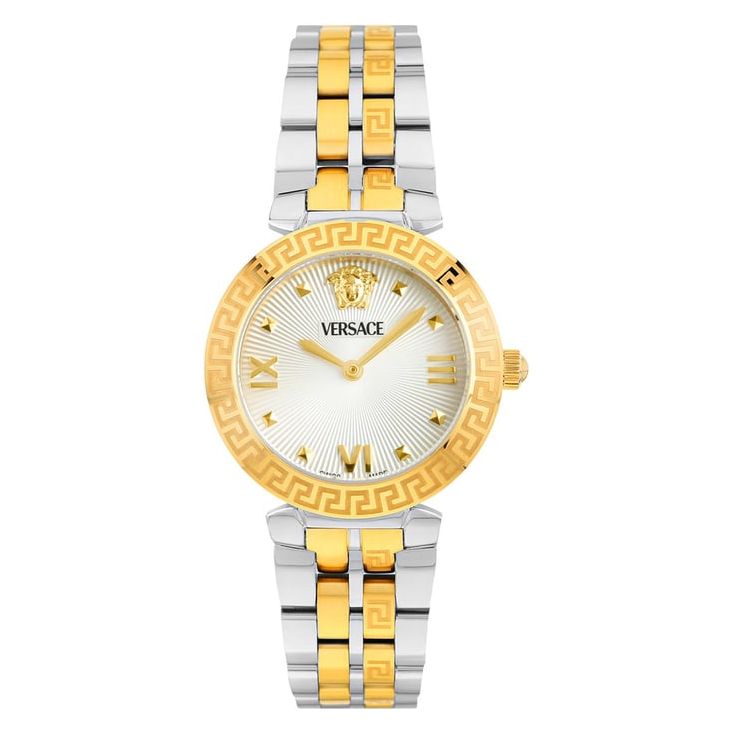 Expertly crafted with a 32 mm white-silver round dial, this Versace analog watch exudes elegance and sophistication. Its timeless design and precise analog movement make it the perfect accessory for any occasion. Elevate your style with this luxurious timepiece.