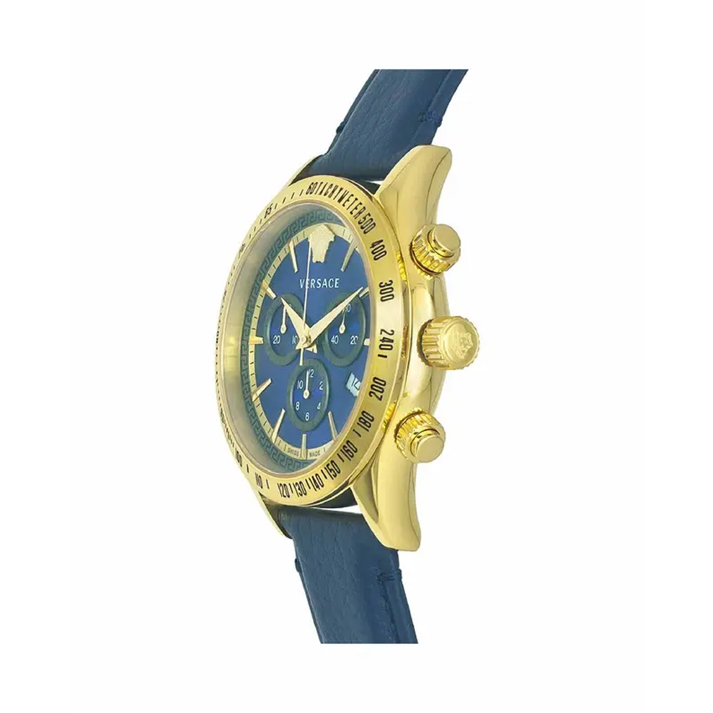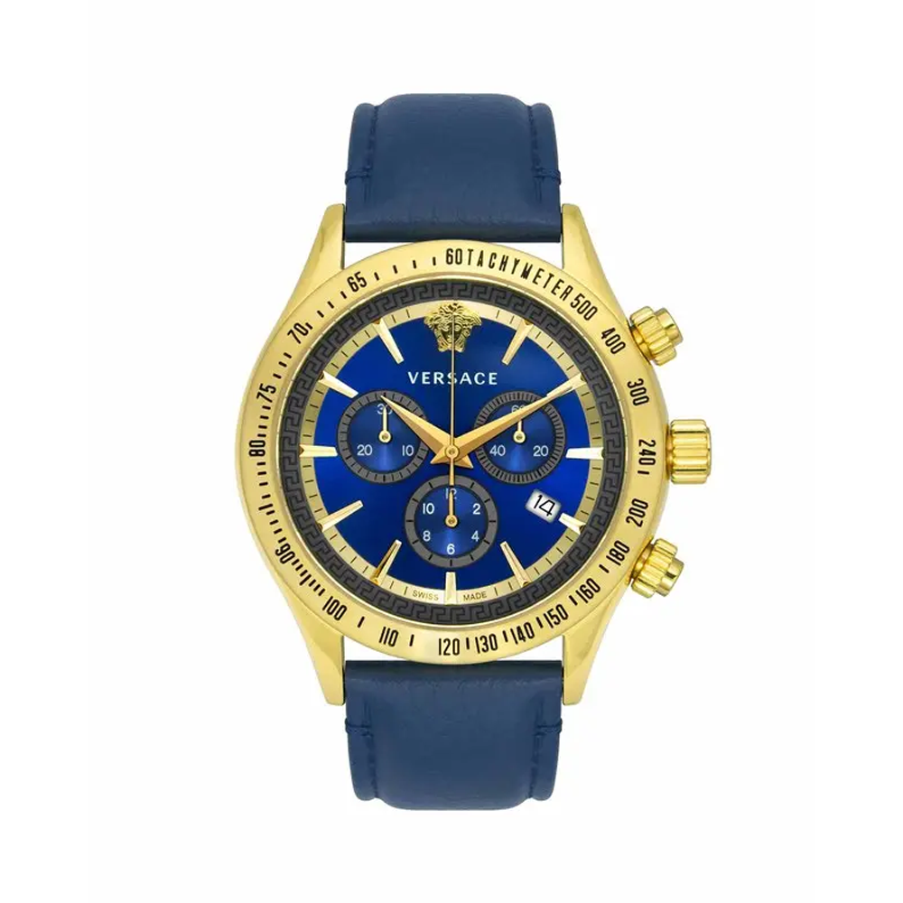 Versace Chrono Classic watch for gentlemen has elegant design and high functionality that was made for active and style-conscious men.The men's watch is made of stainless steel case and has a diameter of 44 mm.The blue dial has Greca pattern and contains date window display, three subdials for chronograph functionality,...