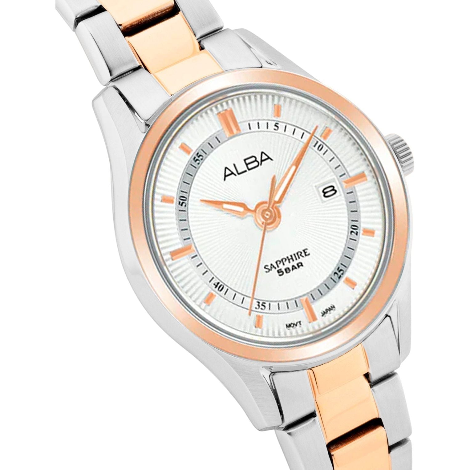 L/G: Women's Movement : Quartz Material : Stainless Steel Case Size: 30mm Glass: Sapphire Crystal Case Back : Screw Case Back Luminous : Luminous hands Band : Stainless Steel Material Water Resistant: 5 Bar Date : Date Movement Calibre : VJ22