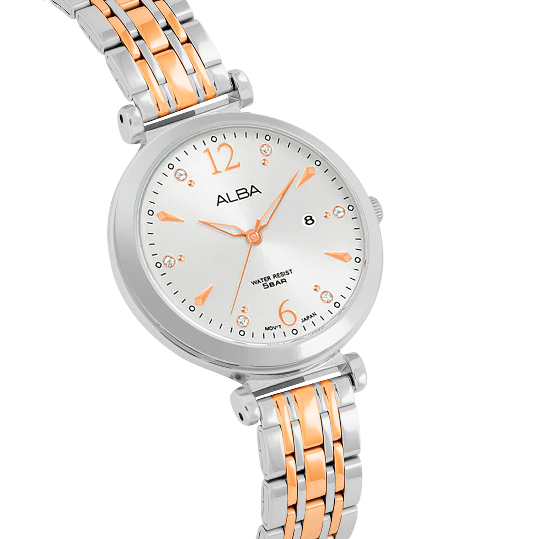 L/G: Women's Movement : Quartz Material : Stainless Steel Case Size: 32mm Glass: Mineral crystal Band : Stainless Steel Material Water Resistant: 5 Bar Date : Date Movement Calibre : VJ22