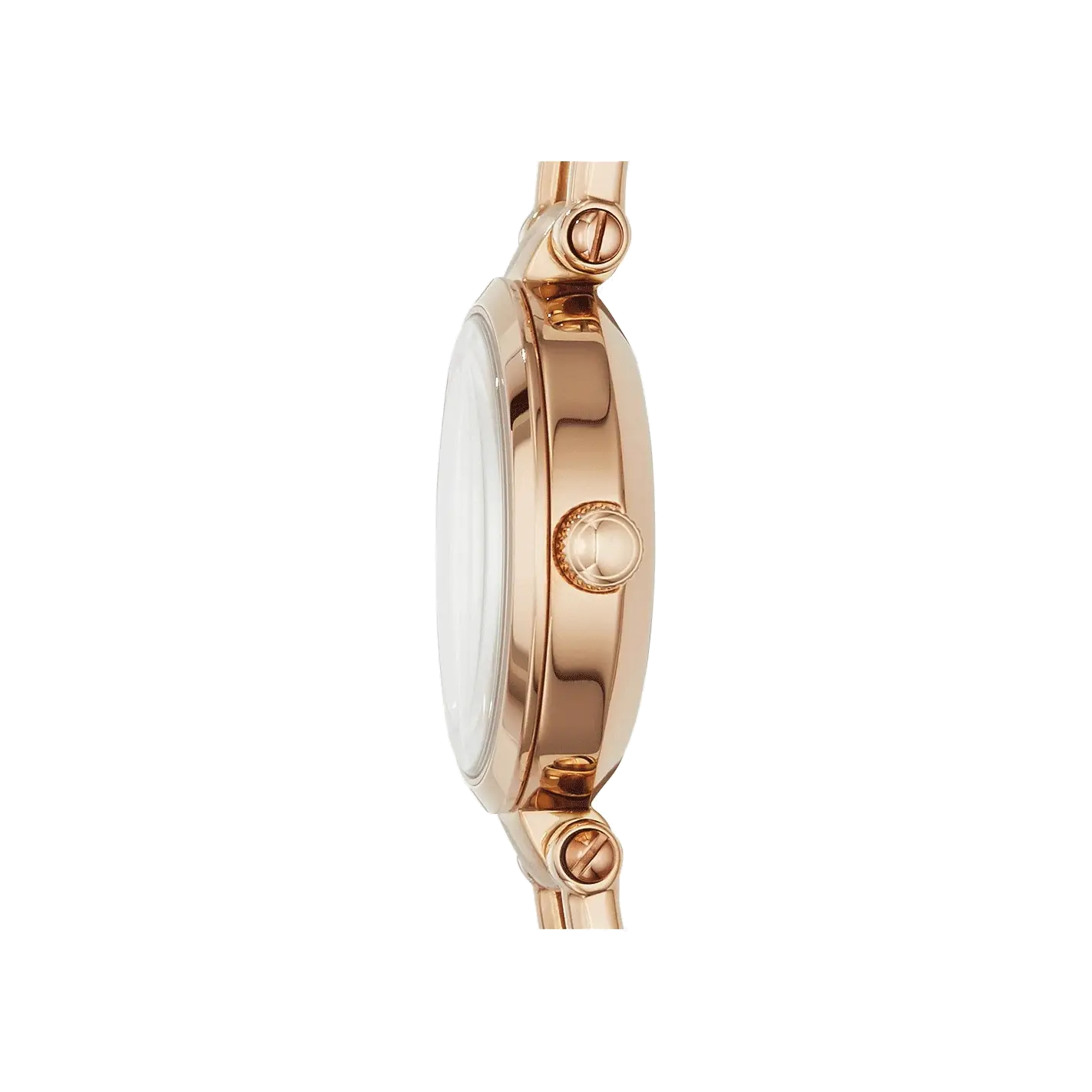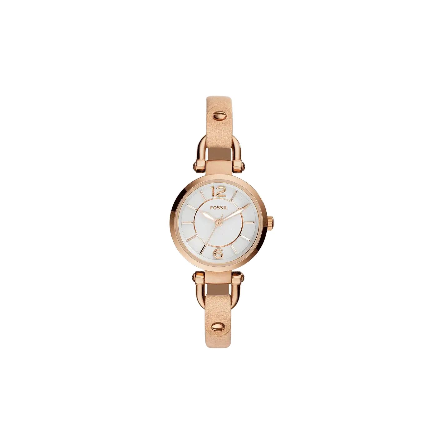 Women in need of a stylish watch, don't worry, Fossil offers this watch from their Georgia Mi collection that has a classic white dial with rose gold markings and bold numberings for 12 and 6 hour mark. A stainless steel case again in wonderful rose gold along with a smooth...