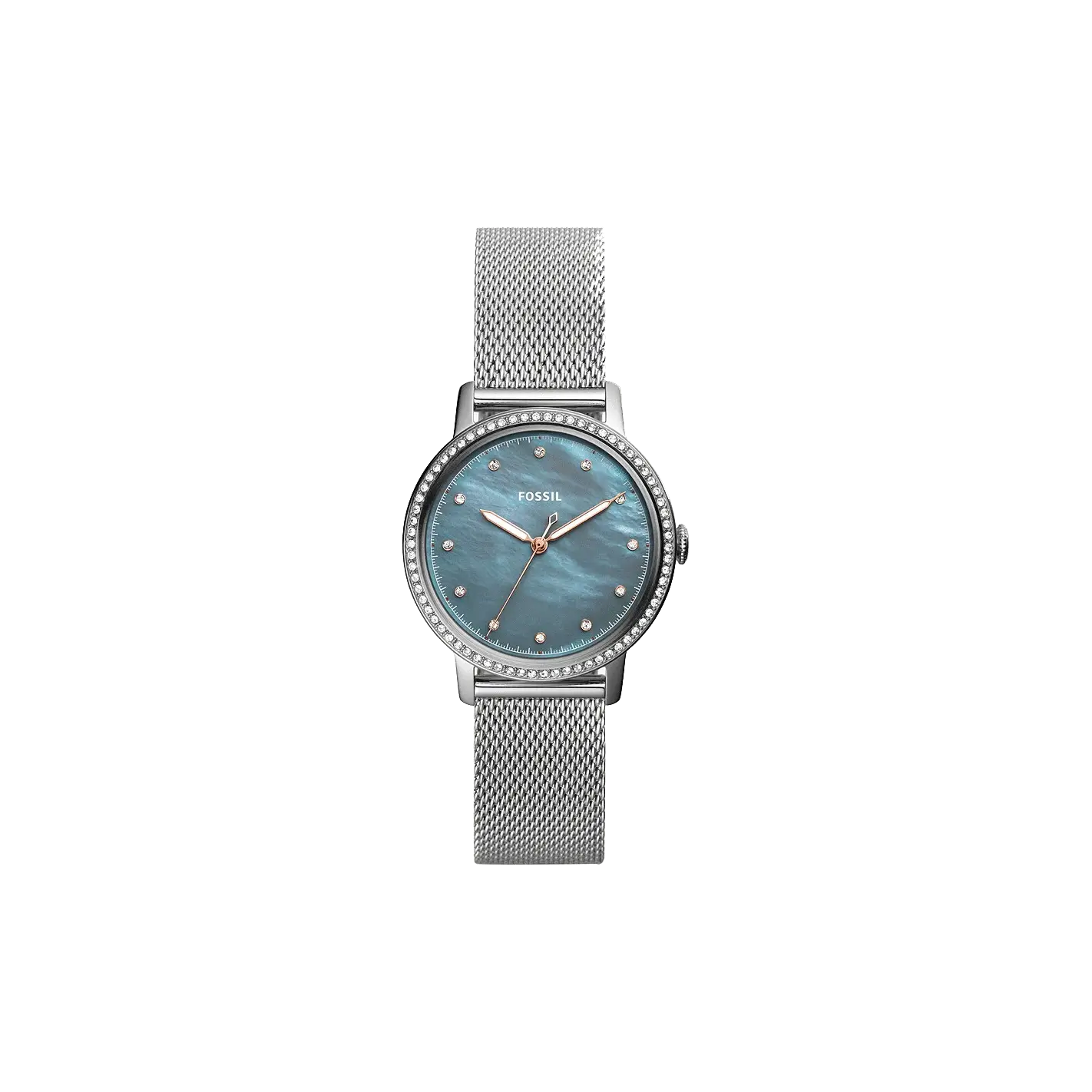Very few watches have the potential to captivate you in the very first glance. This Neely features a mother of pearl dial with a crystal embellished accents at all hour and three lum hand movements. This watch is encased in a silver case with a silver mesh bracelet which is...