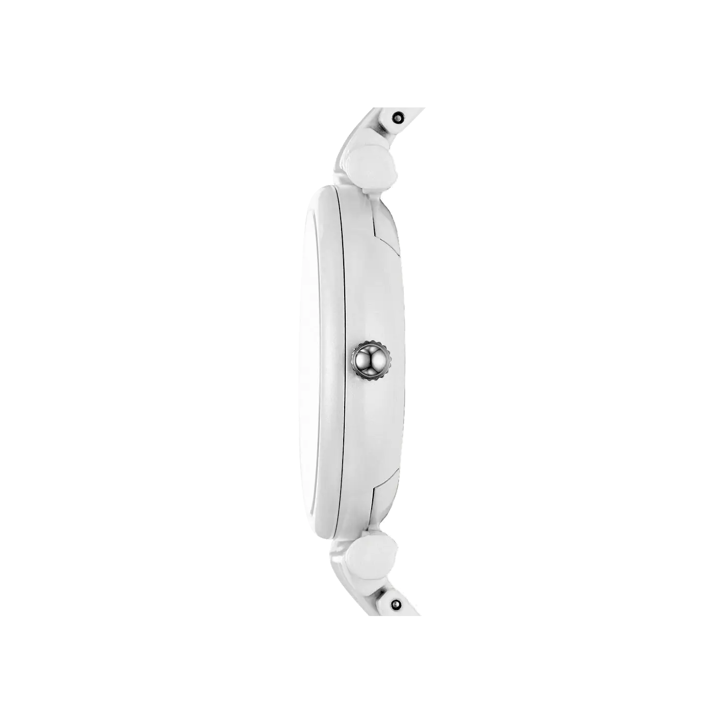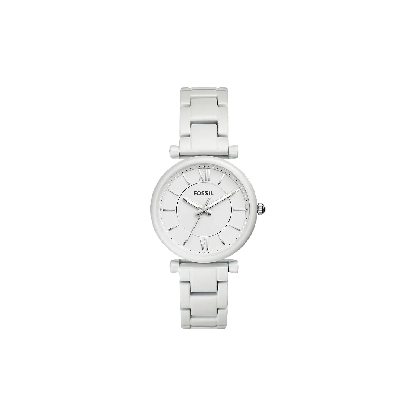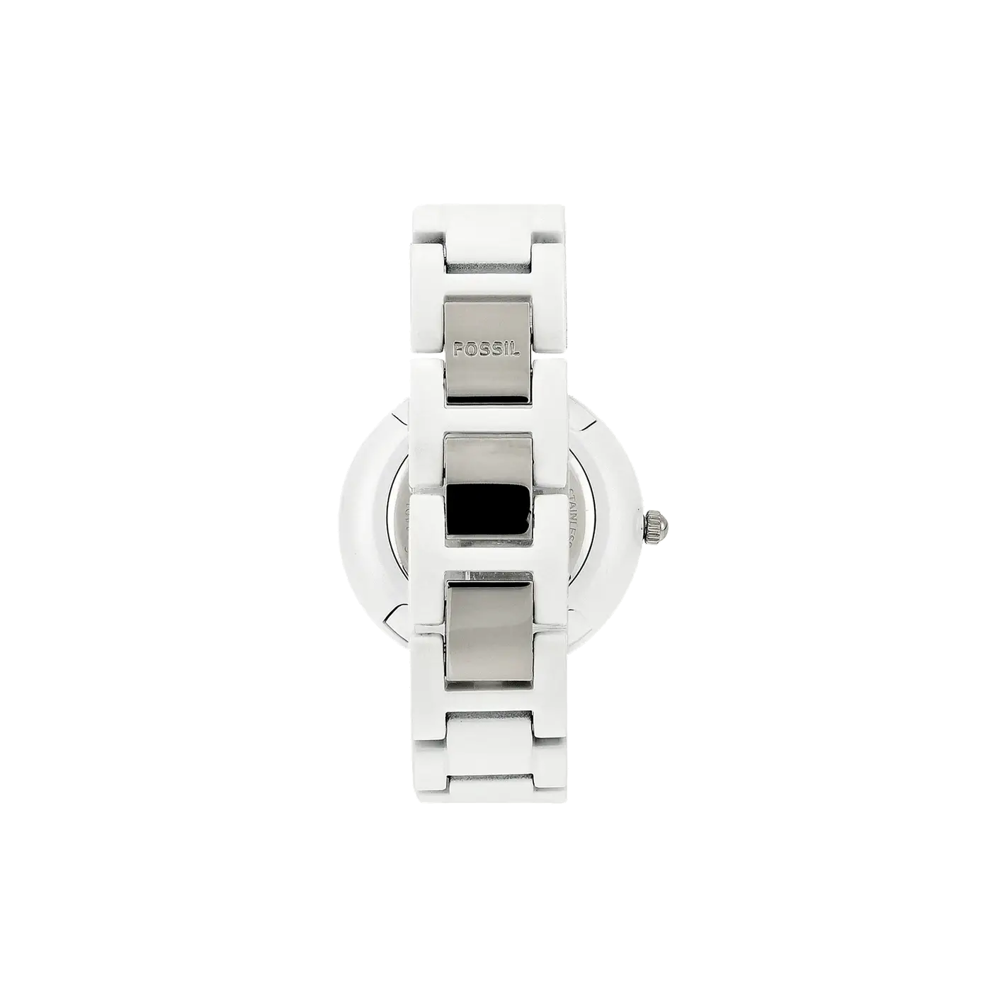 Wearing this appealing analog Carlie watch by Fossil, you are bound to go ‘somewhere’ with your dreams. The watch features a satin dial with a pearl white bezel, three-white lum hand and matching stainless steel single link bracelet. It is water resistant and suitable for all the ladies wanting to...