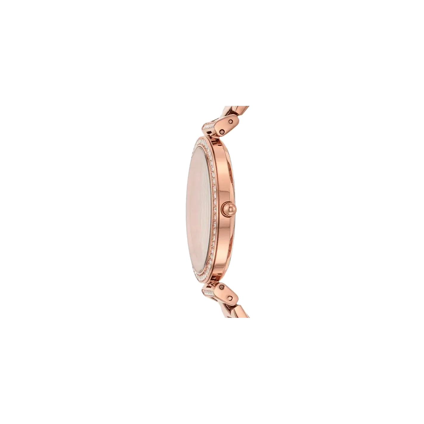 We’re mad about Madeline – the dressed-to-impress timepiece that’s dolled up with extra glitz and extra shine. This 38 mm Madeline watch features a rose gold dial and analog movement. It is completed with a rose gold tone stainless steel bracelet with a 2 pusher foldover clasp.