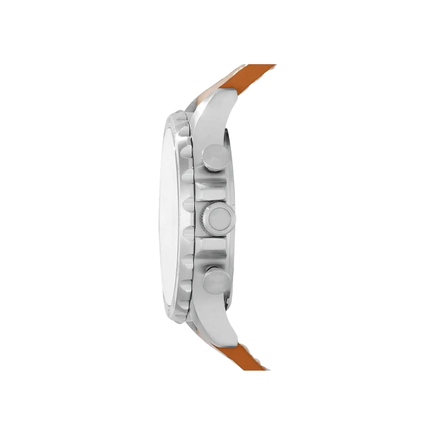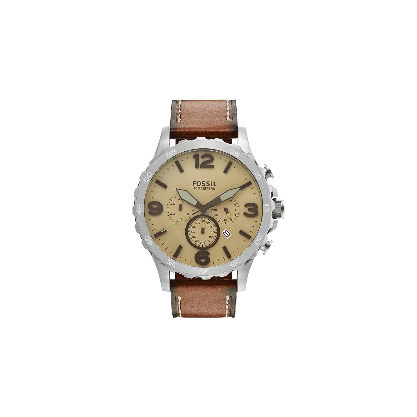 Wear the ultimate expression of Fossil style and design evolution on your wrist with Nate's chronograph watch. Sleek and streamlined with a thick steel case and brown leather strap, Nate's made for the man who likes his style somewhere between casual and cool.