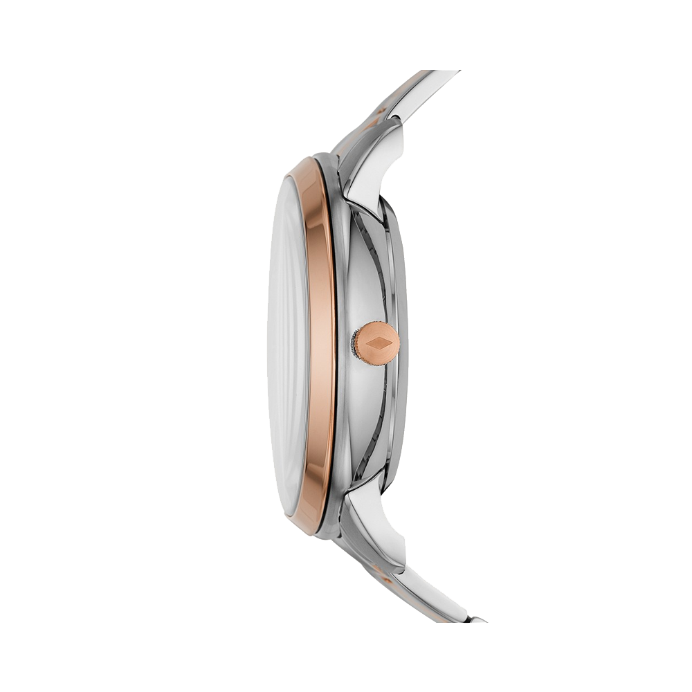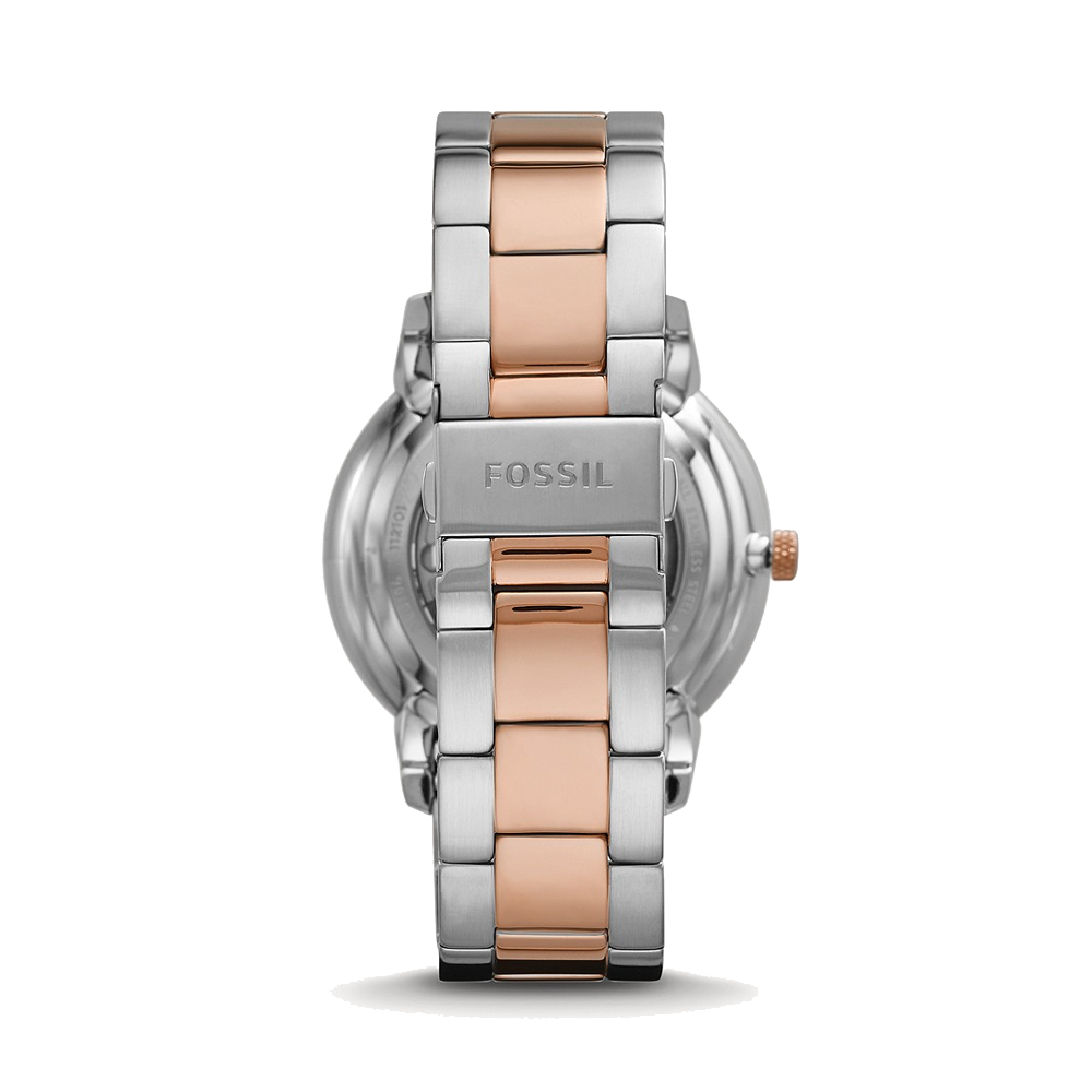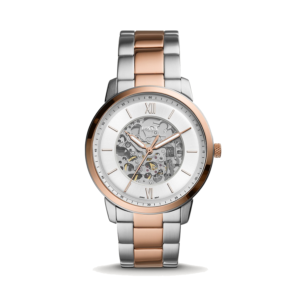 A movement for today with the power of tomorrow, the Neutra automatic from Fossil is a timepiece for true connoisseurs. This 44mm watch features a white sunray dial, automatic movement and a two-tone silver and rose gold stainless steel bracelet. It is water-resistant up to 50 m.