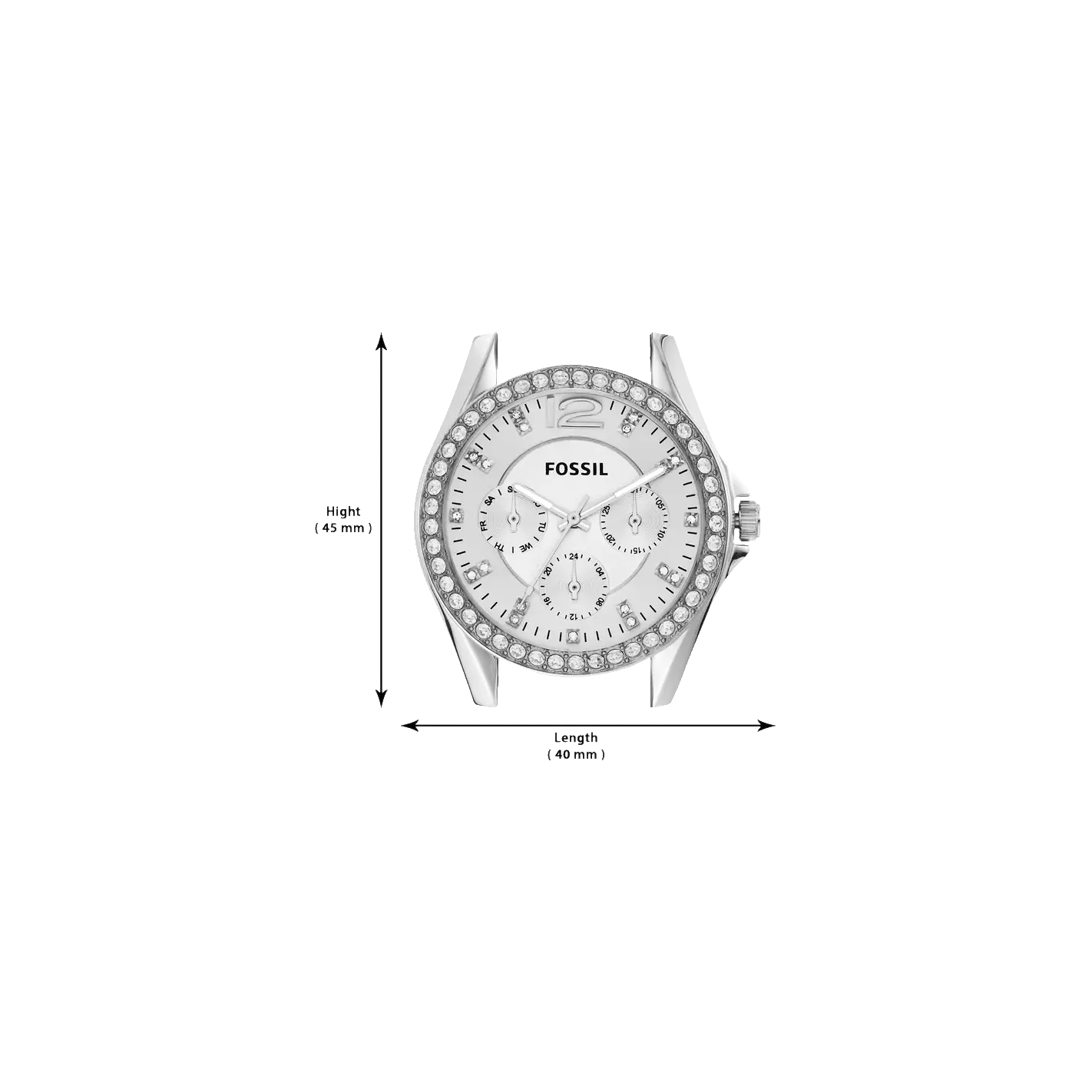 Our shimmering Riley watch adds sparkle to the season. Brilliant stainless steel and a dazzling crystal dial will ensure that you stand out. This Riley watch also features a multifunction movement on a strainless steel bracelet.