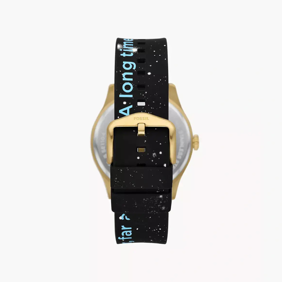 Celebrate 40 years of Star Wars™ Return Of The Jedi™ with this special edition Star Wars x Fossil watch. This thoughtfully crafted timepiece features a black dial with the iconic gold-tone Star Wars logo, a printed strap that reveals even more details in the dark and a specially etched caseback.