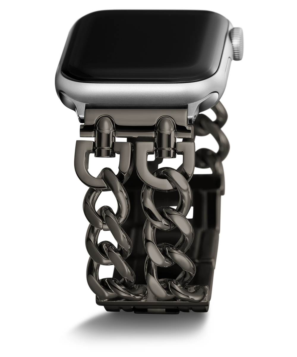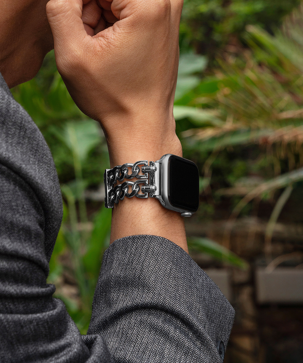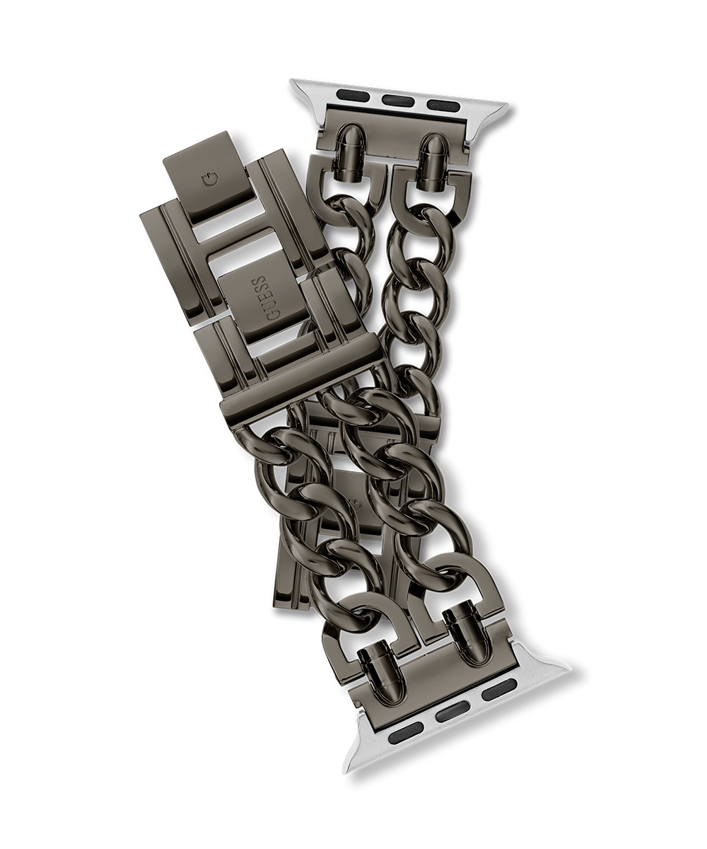 Go to the shopThis gunmetal bracelet features an ID chain look with self-adjustable G-Links that is compatible with Apple Watches 42-44 mm. *Apple Watch not included