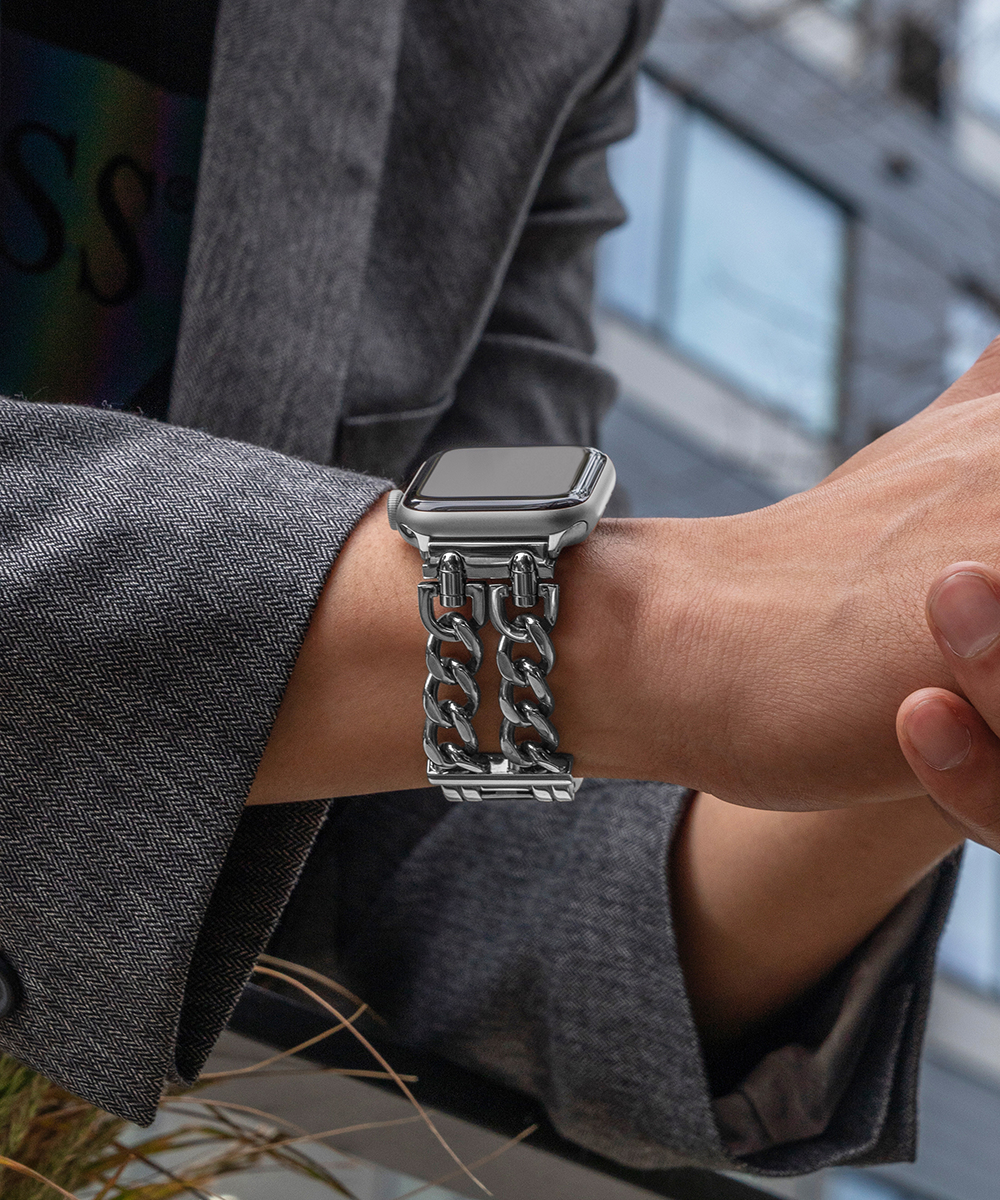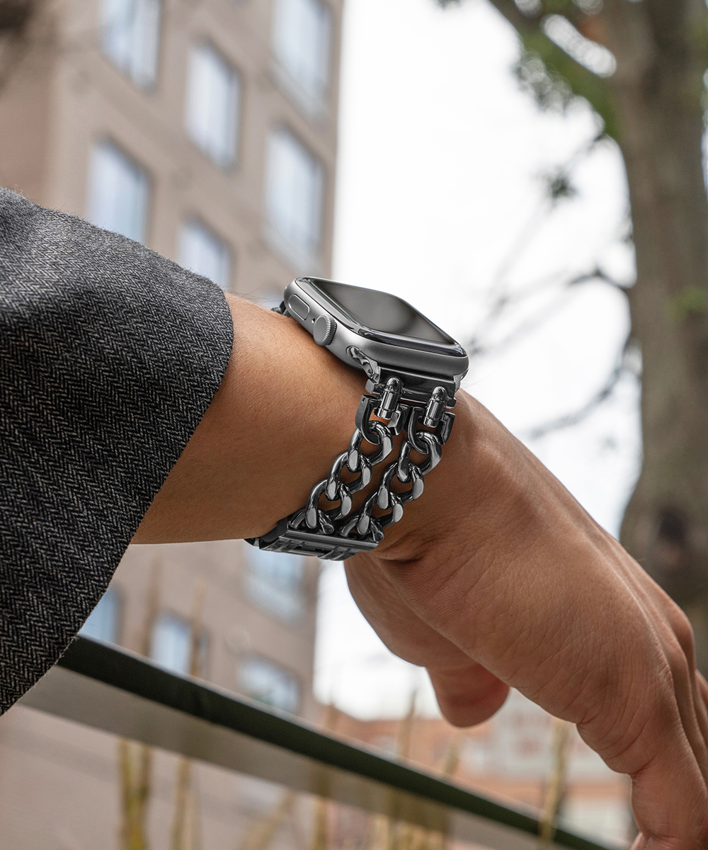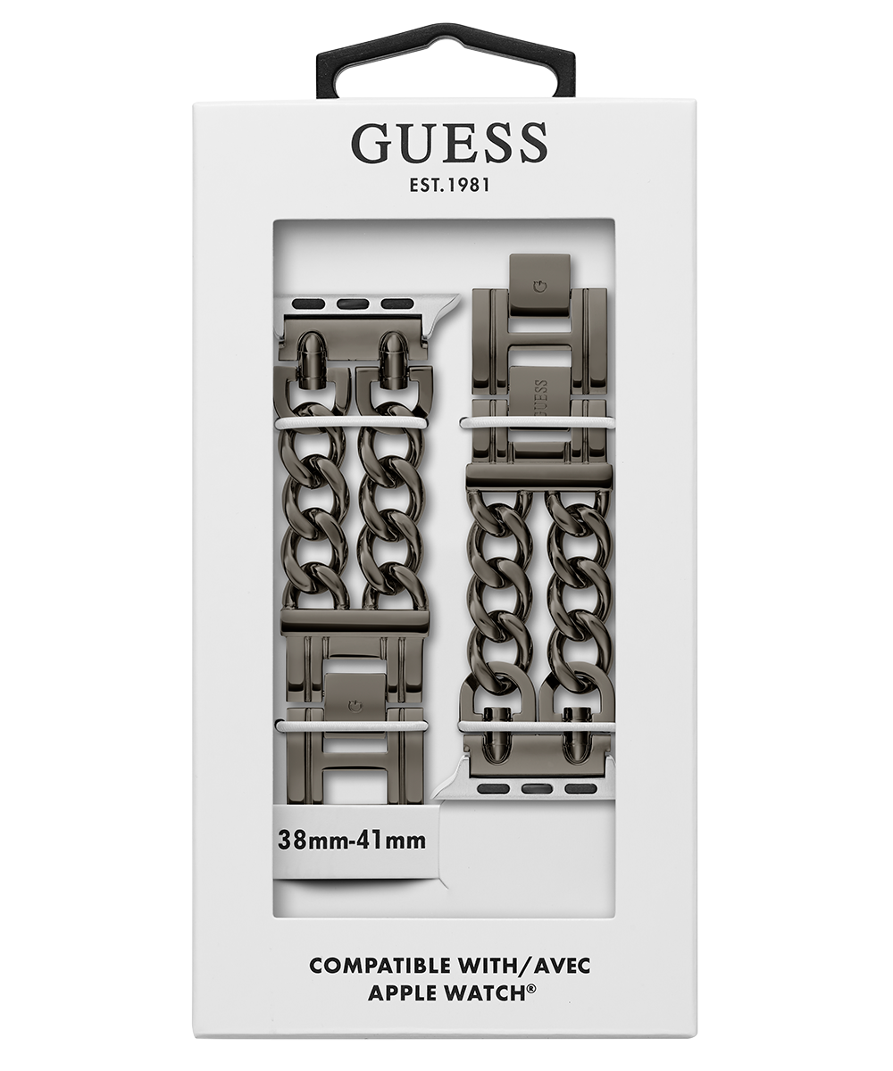Go to the shopThis gunmetal bracelet features an ID chain look with self-adjustable G-Links that is compatible with Apple Watches 42-44 mm. *Apple Watch not included