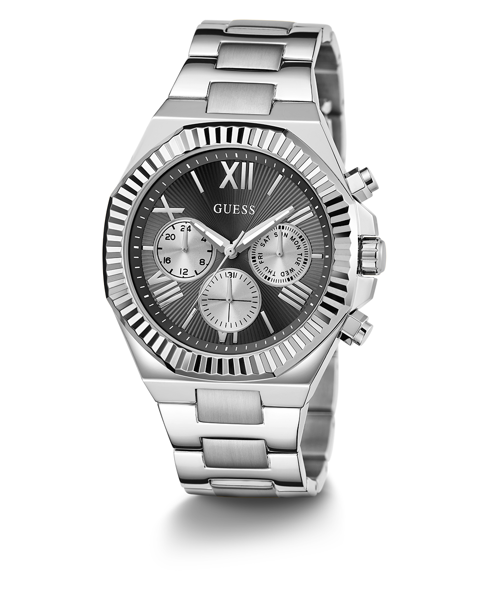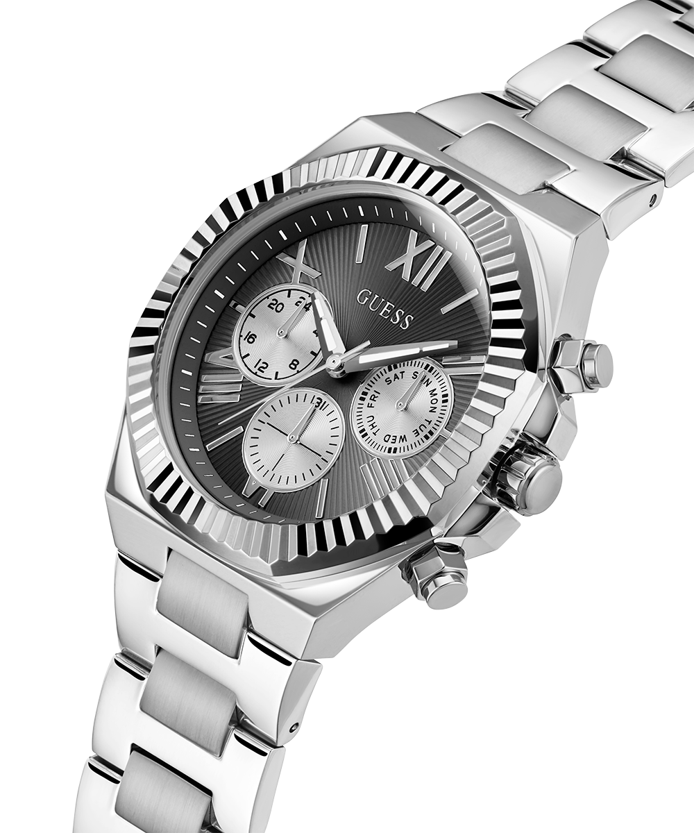 GUESS Equity Mens Silver Tone Multi-function Watch