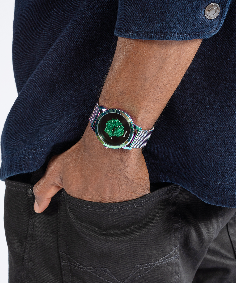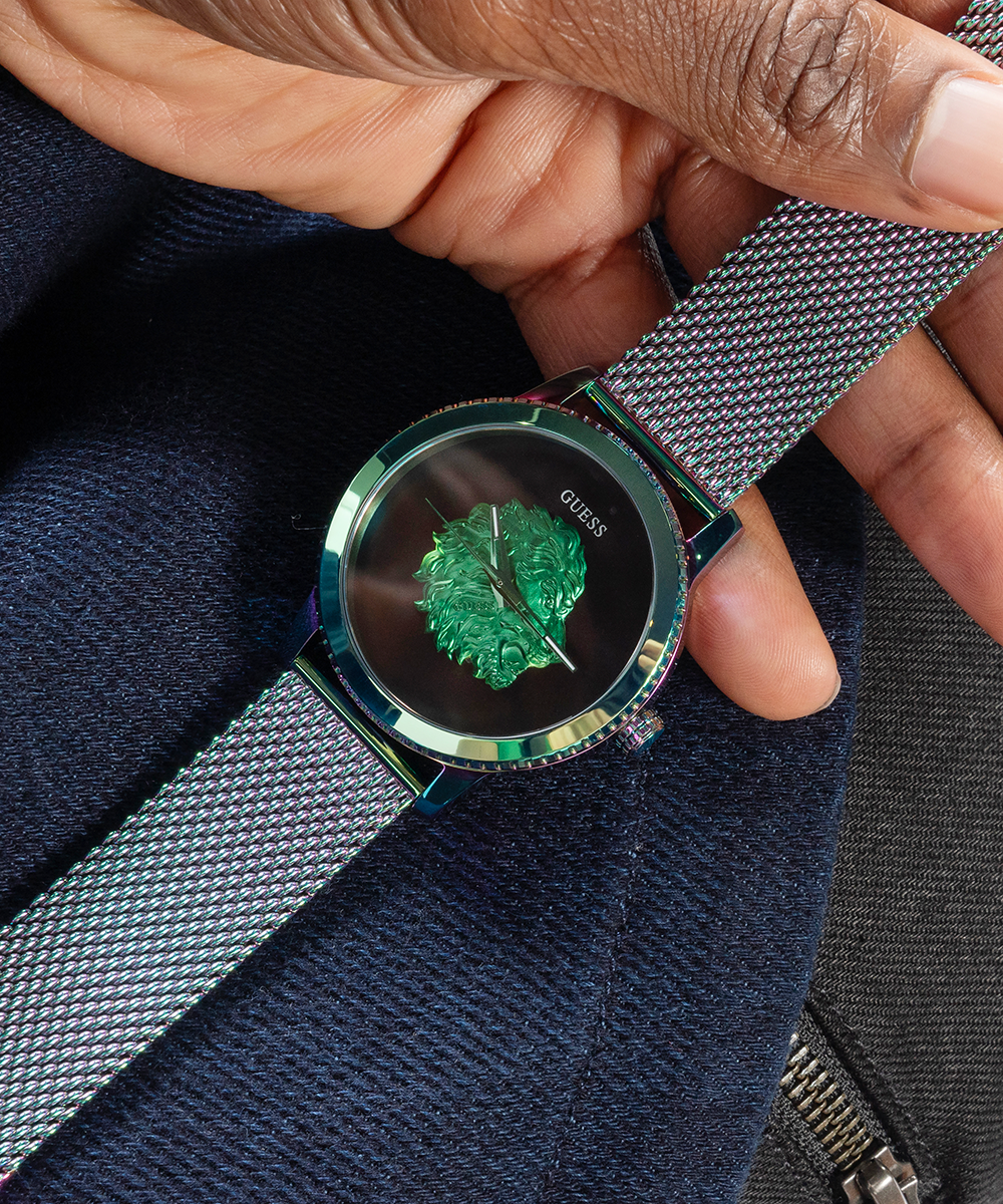 Go to the shopA sleek self-adjustable mesh pairs with this iconic lion emblem dial.