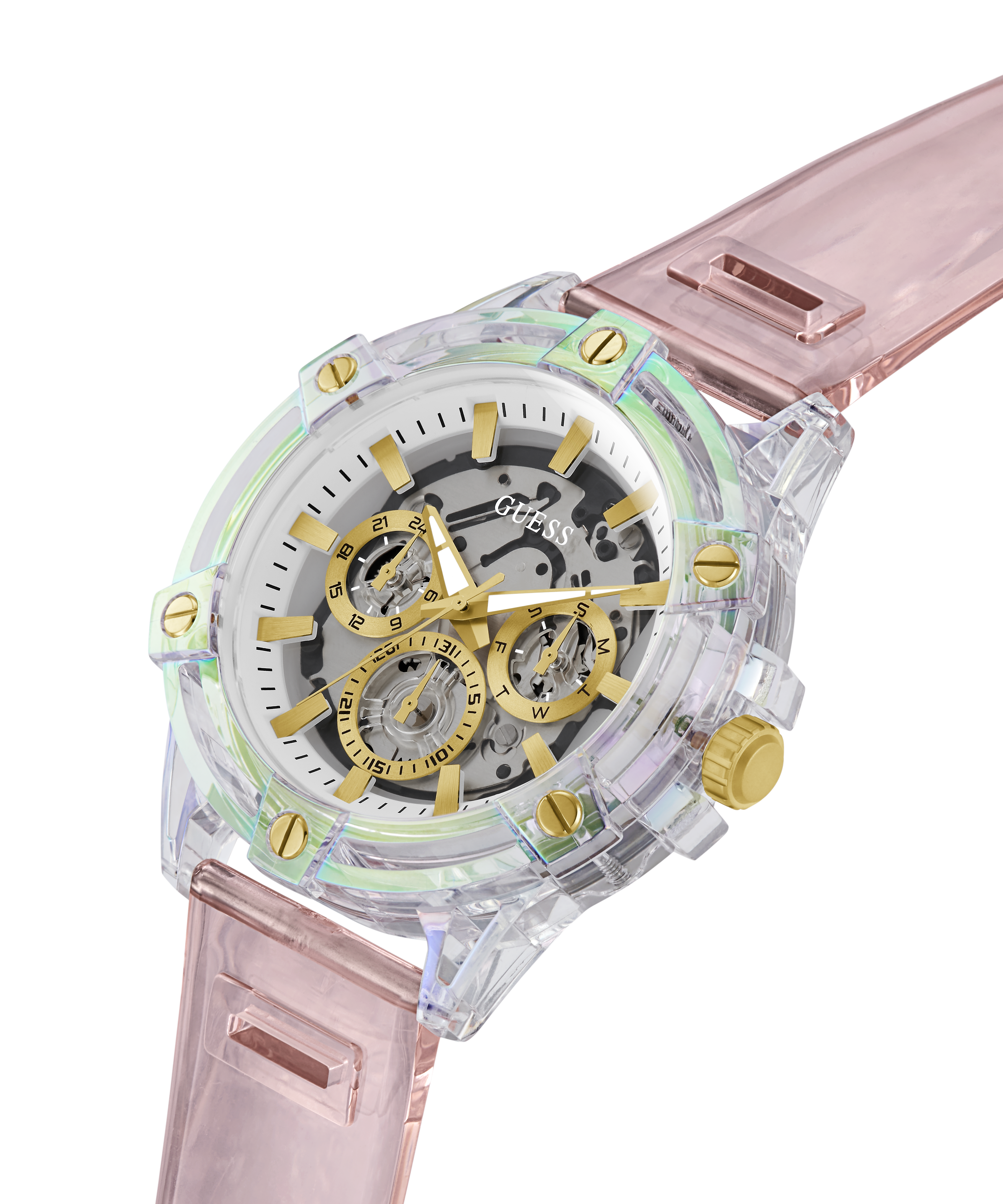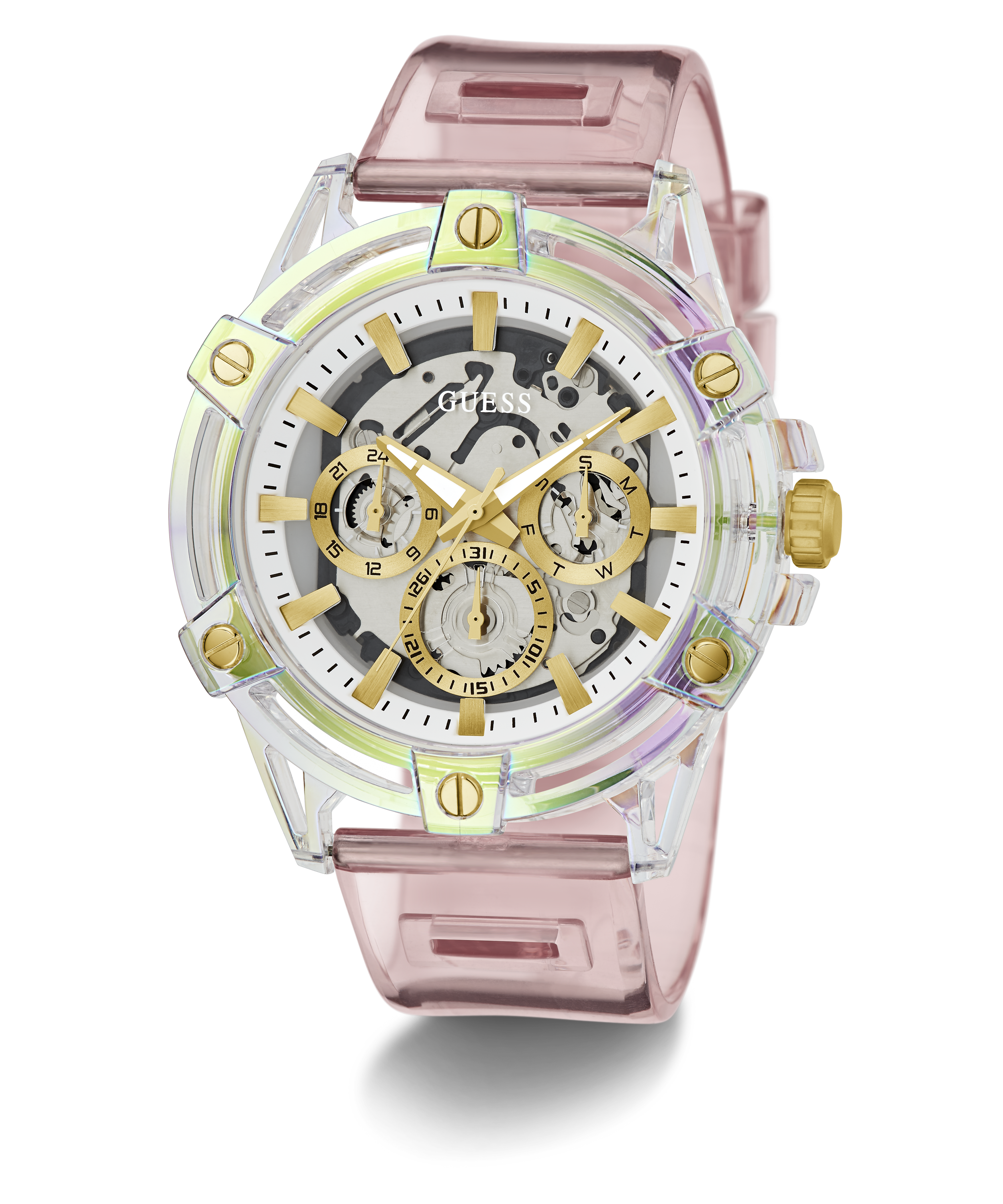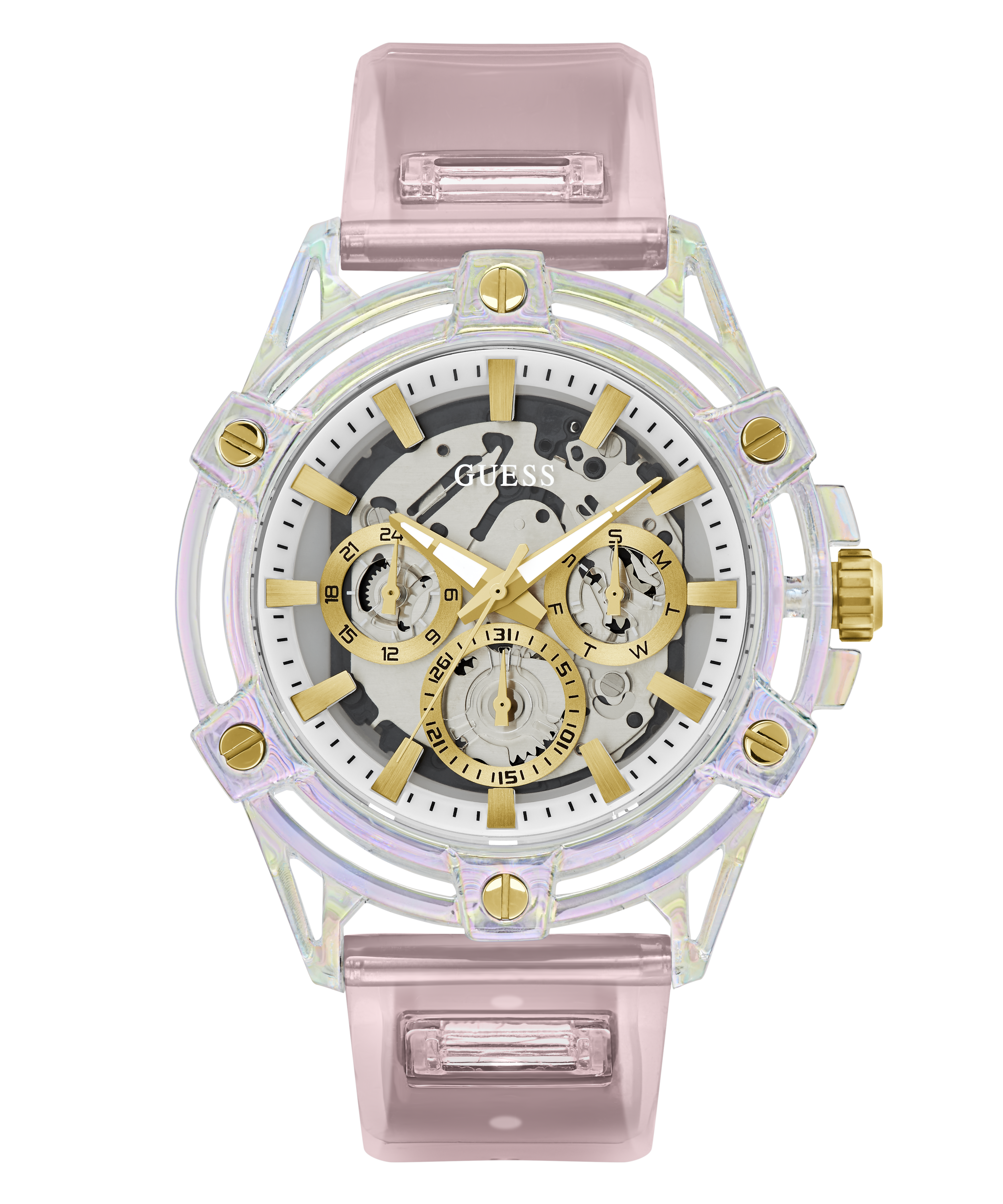 GUESS Mens Pink Clear Multi-function Watch