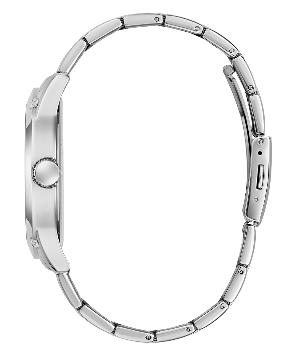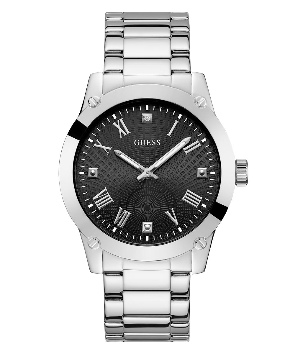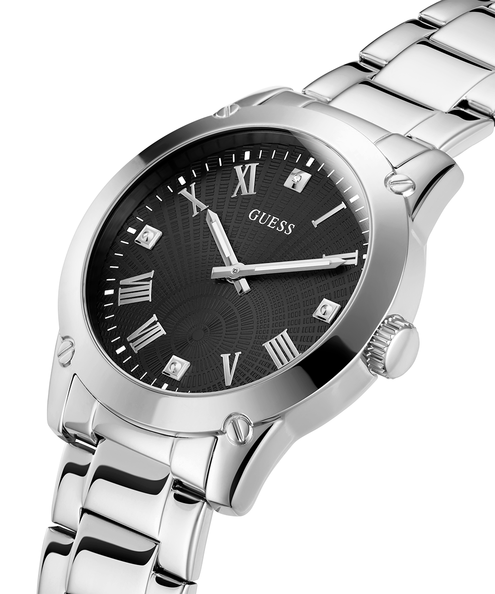 Back to Basics with this dressed up look featuring a diamond dial indice at the 12 o'clock hour and integrated bracelet design.