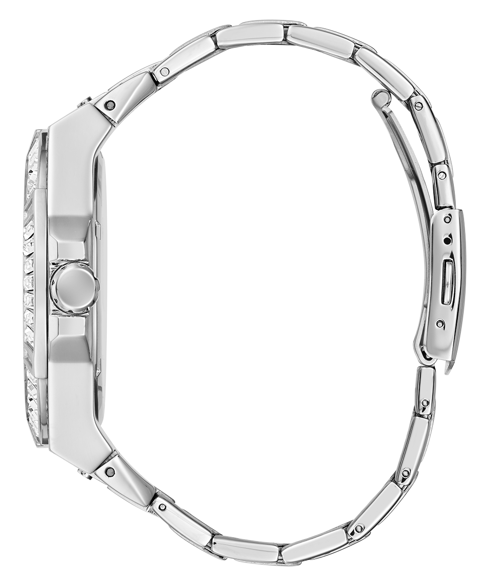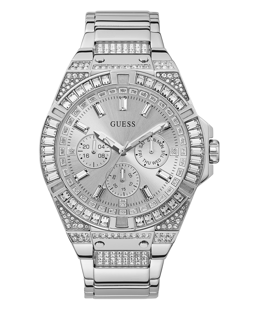 Bling it on with this oversized timepiece! Boasting 213 crystals on the case, multifunction dial and bracelet this stainless steel bracelet is sure to grab everyones attention.