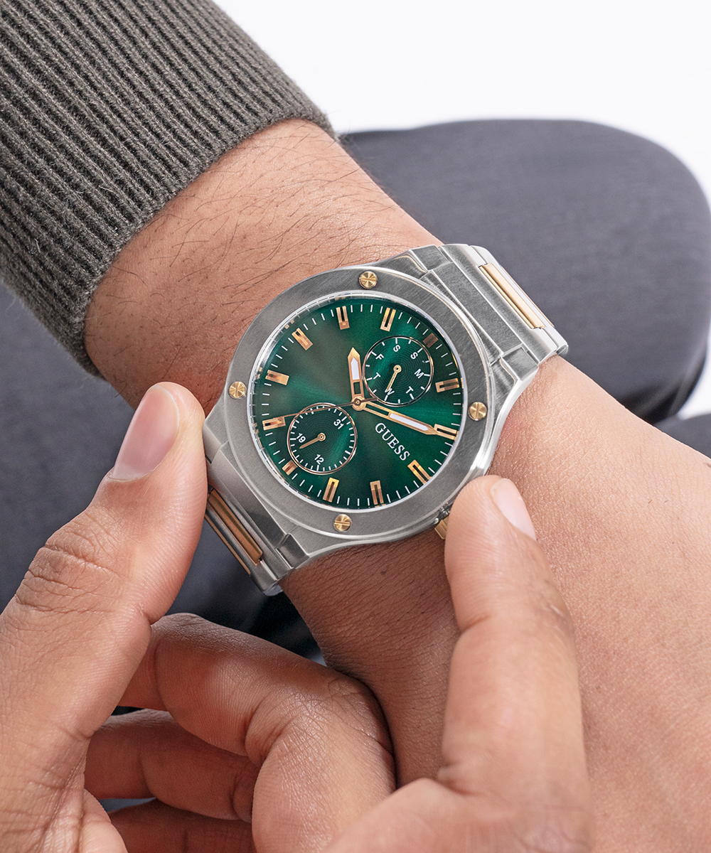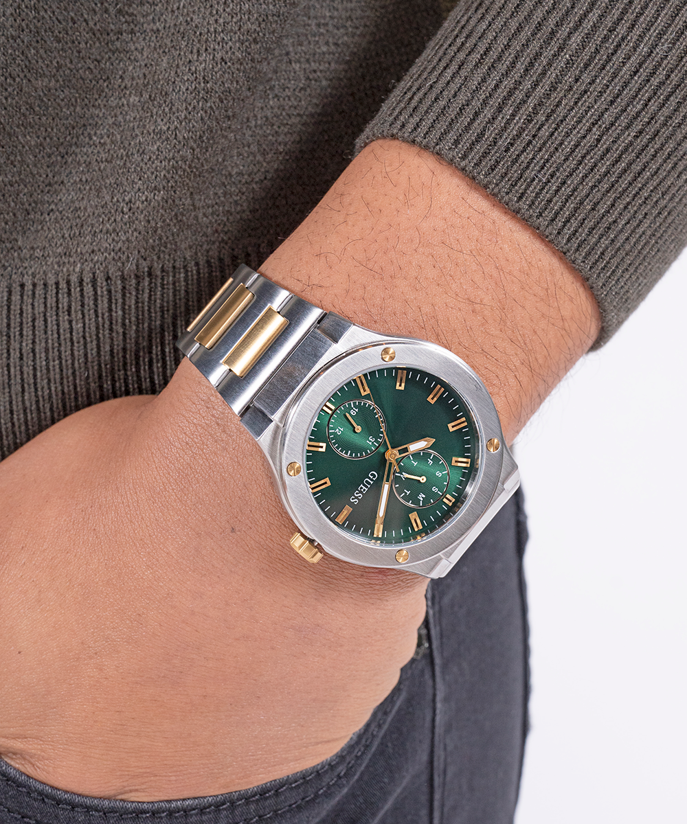 Jet-set to anywhere in this versatile watch. Its unique sub dial placement and contrast screw details and indices pair well with a brushed finished bracelet.