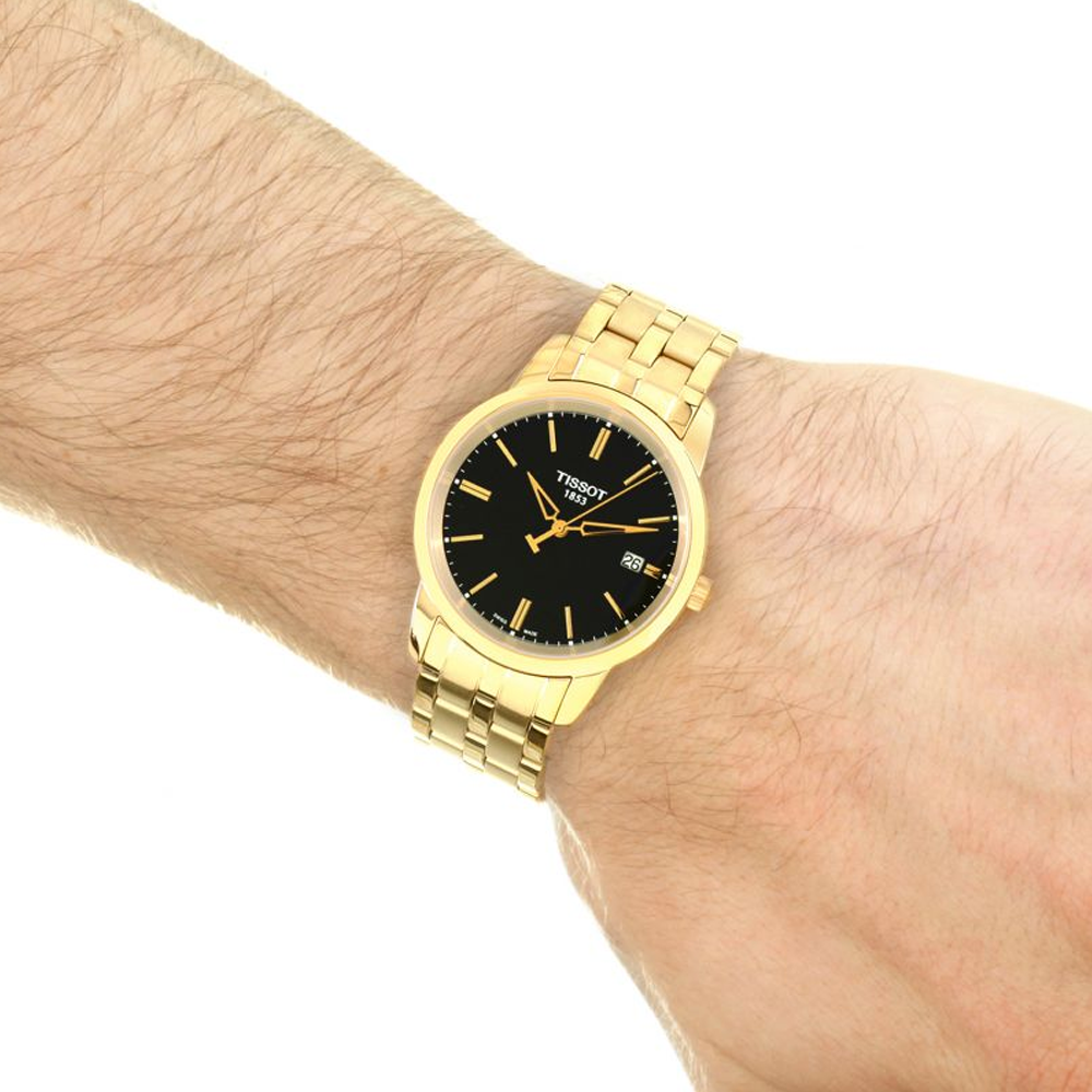 Mens Tissot Classic Dream model in a classic and stylish design, complete with date function and gold baton markers. The watch is powered by Swiss Quartz movement.