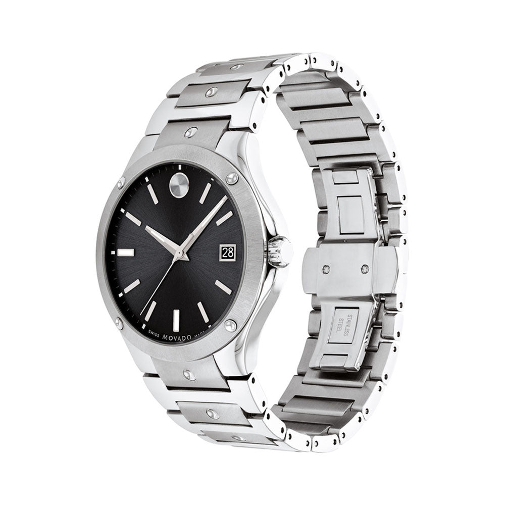 Movado watches offer excellent craftsmanship with stunning design, and are known for being lightweight and comfortable on the wrist. This men's watch from the SE. Pilot collection features a stainless steel bracelet and chronograph dial.