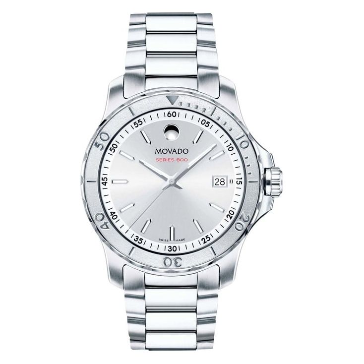 Lending a contemporary twist to an elegant design, this men's analog watch from the Series 800 collection by Movado is a must-have wrist essential. The round dial is secured by a sapphire glass and is housed in a 40 mm case. It exudes plain three hands and a crown for...
