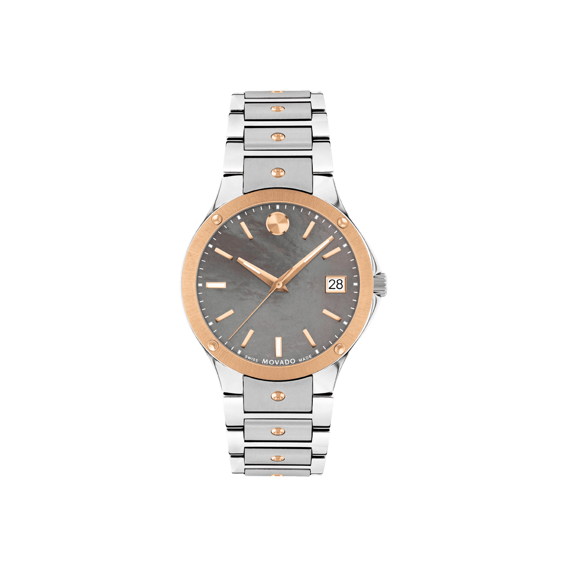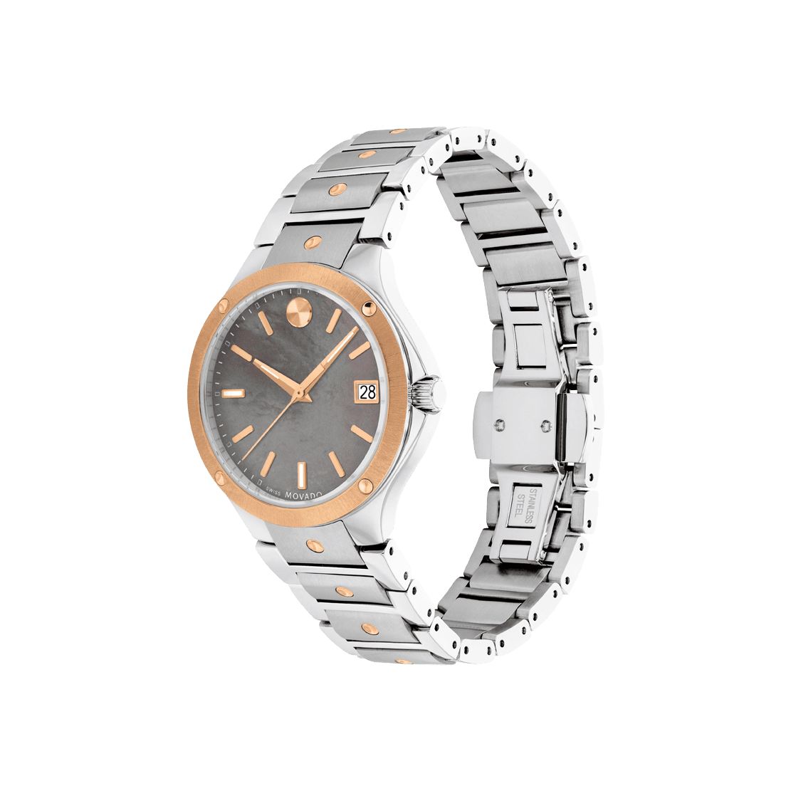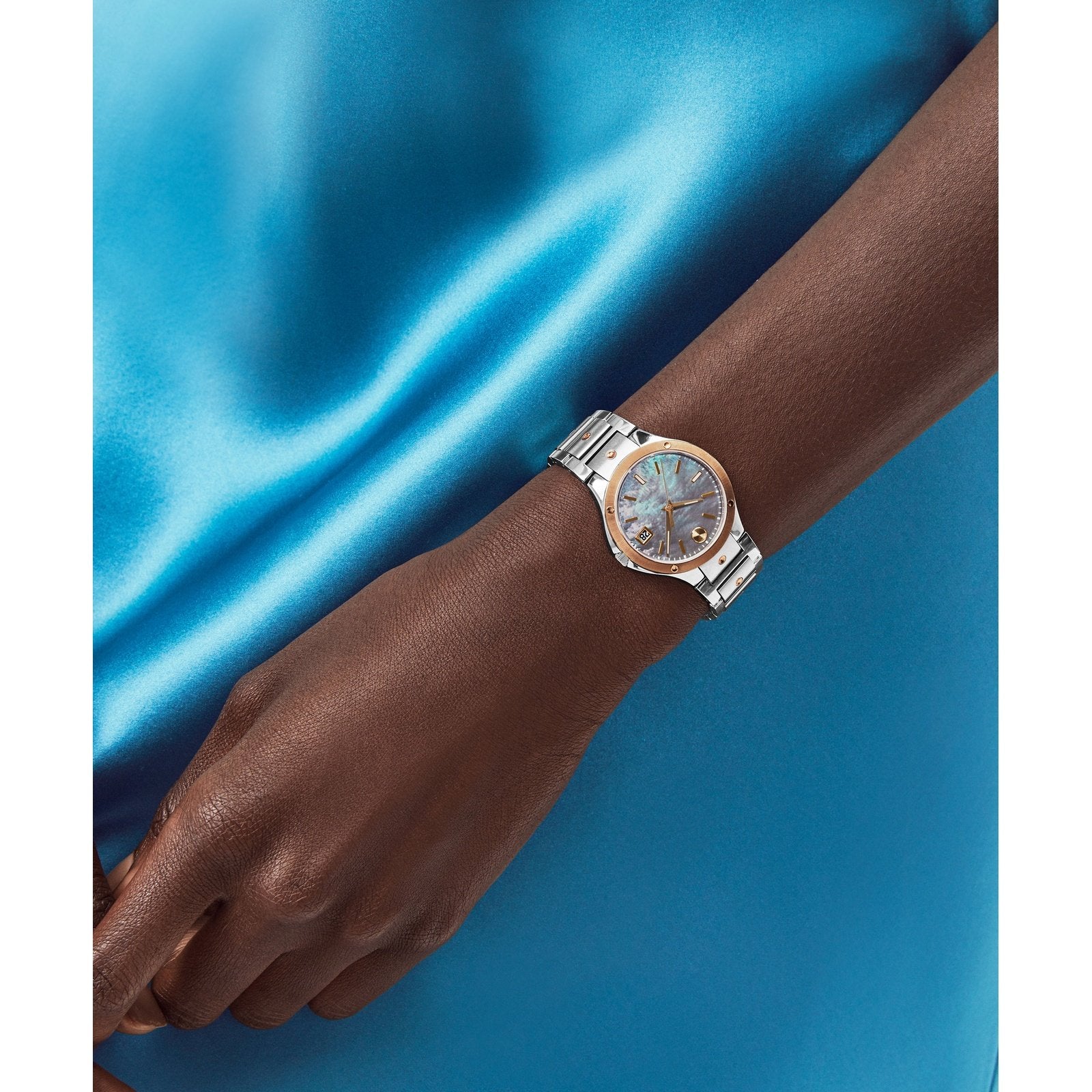 Sophisticated elegance meets sporty style. This stunning watch makes a chic statement with its two-tone design and luxurious mother-of-pearl dial. We’ve added a signature touch with our iconic dot motif displayed in beautiful rose gold PVD at 12 o’clock and in concave accents at the bezel and bracelet. The 32mm...