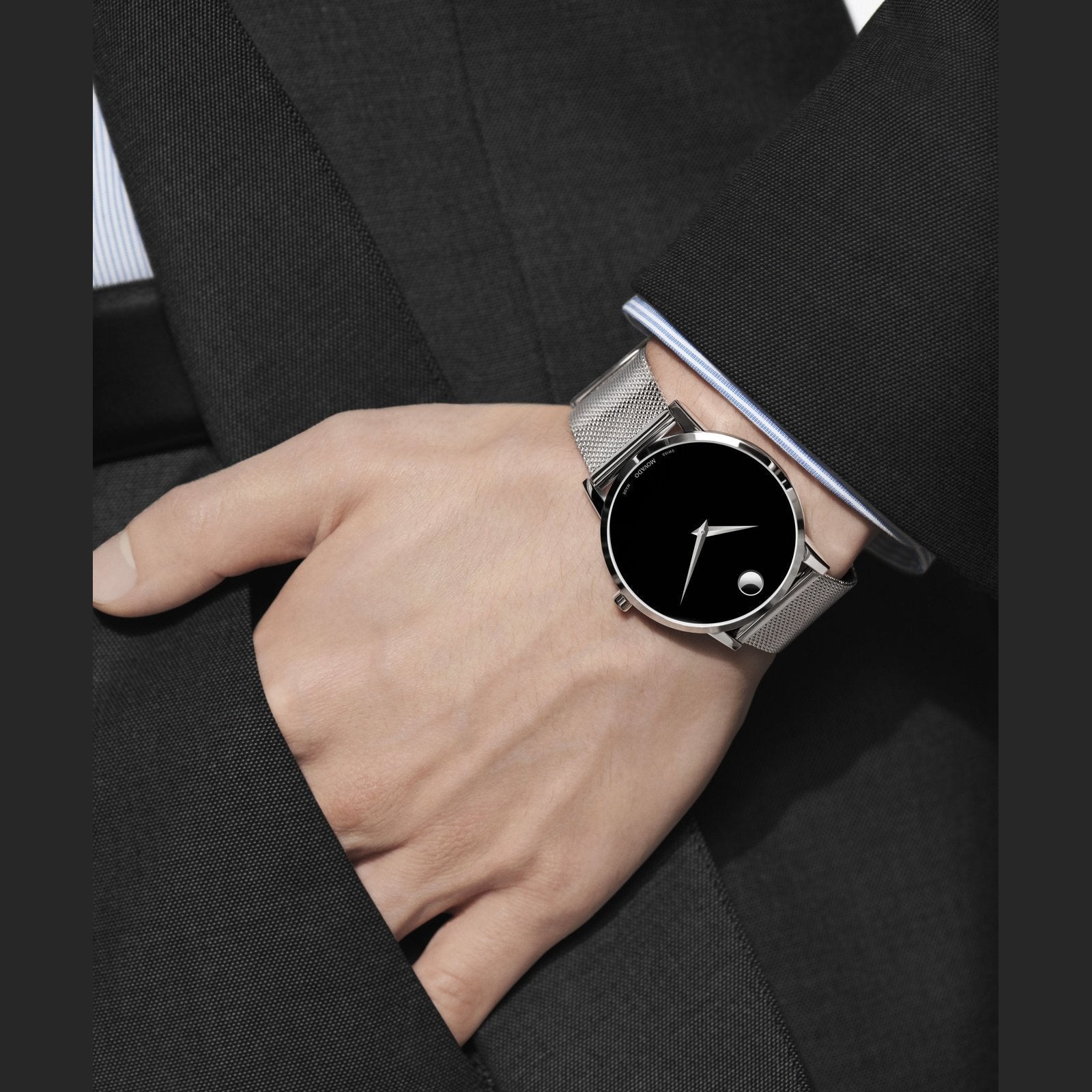 Go to the shopMen's Museum Classic watch, 40 mm stainless steel case, black Museum dial with silver-toned dot and hands, stainless steel mesh bracelet with sliding closure clasp.