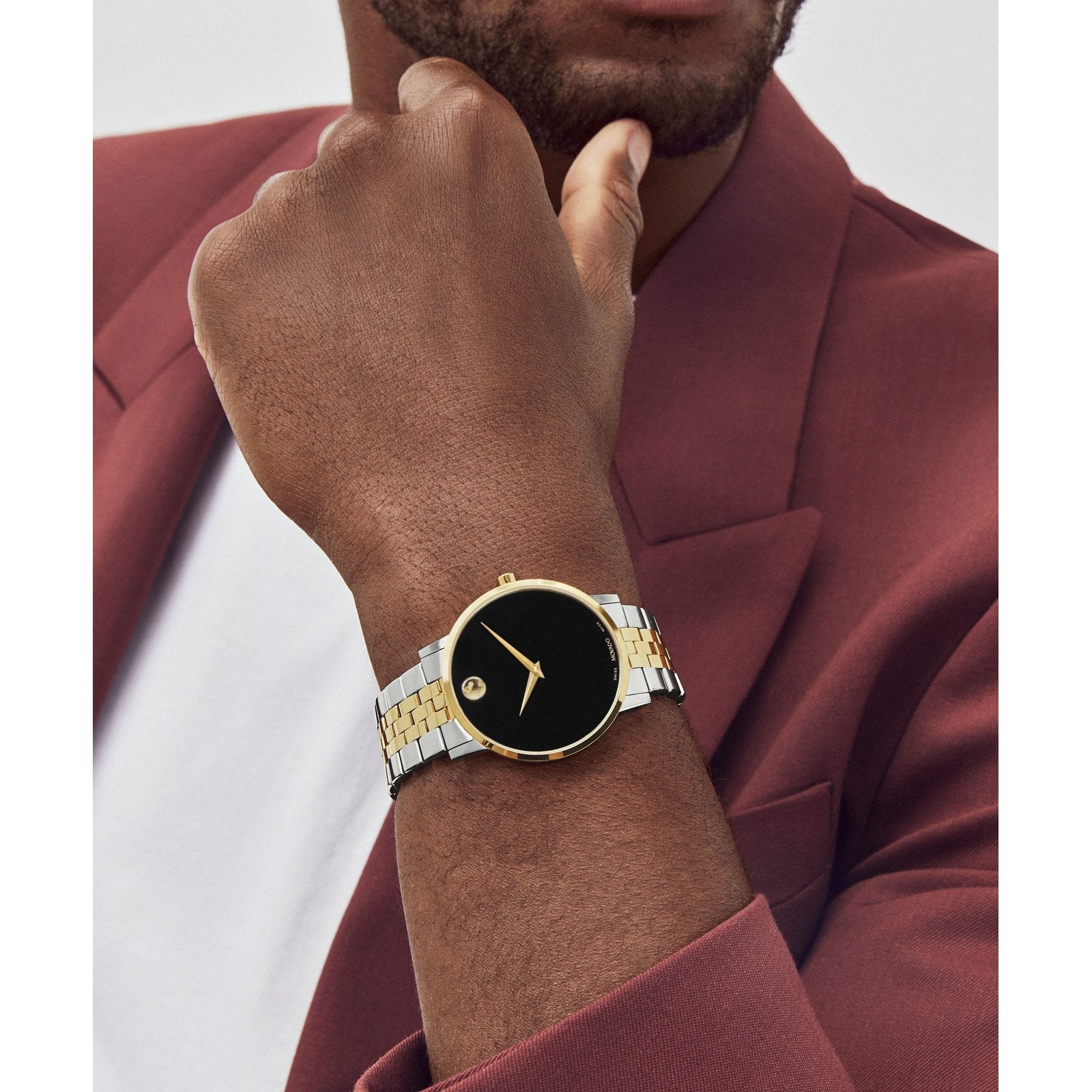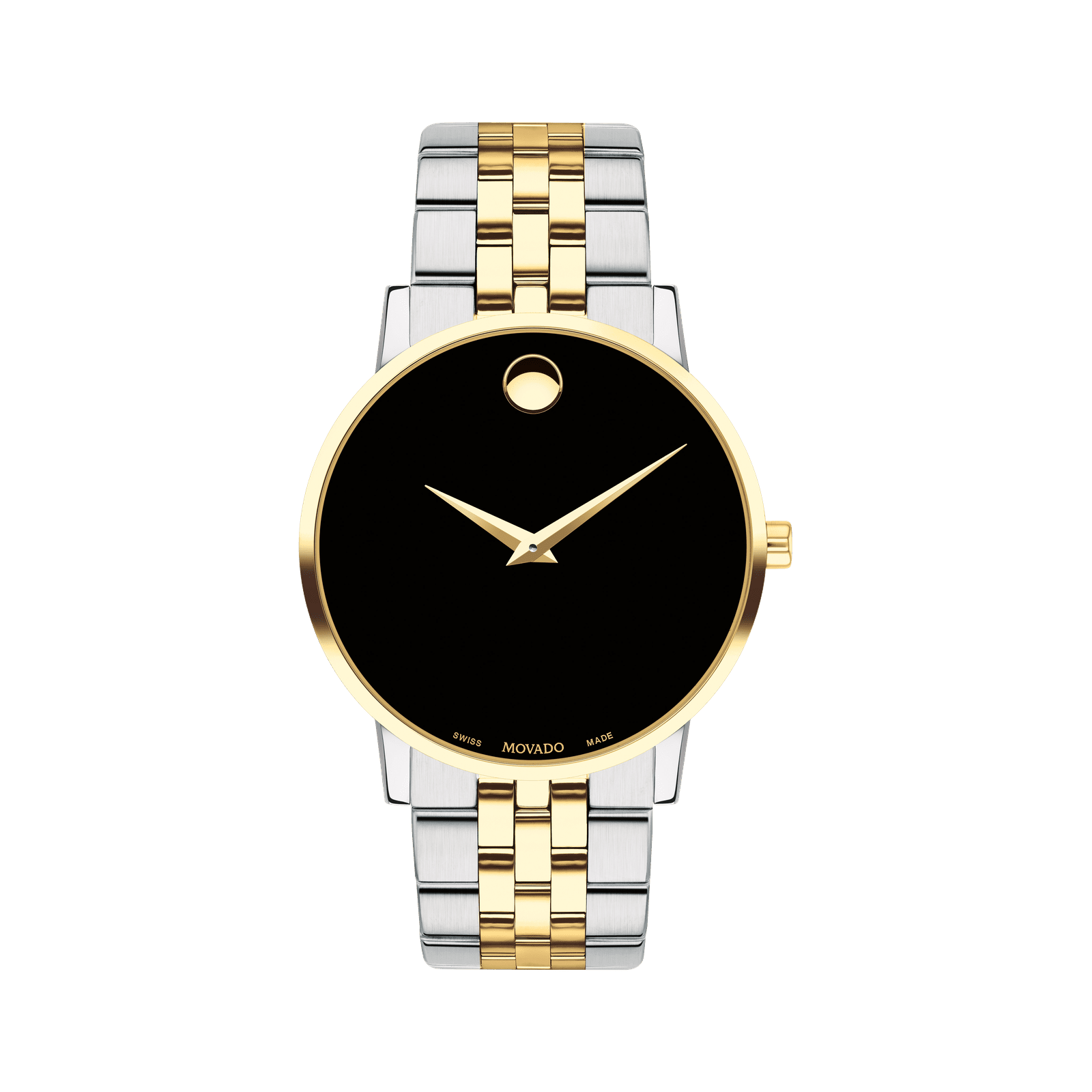 Men's Museum Classic watch, 40 mm stainless steel and yellow gold PVD-finished case, black Museum dial with yellow gold-toned dot and hands, stainless steel and yellow gold PVD-finished link bracelet with deployment clasp.