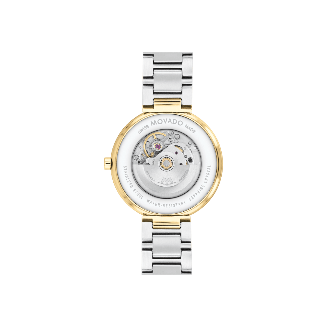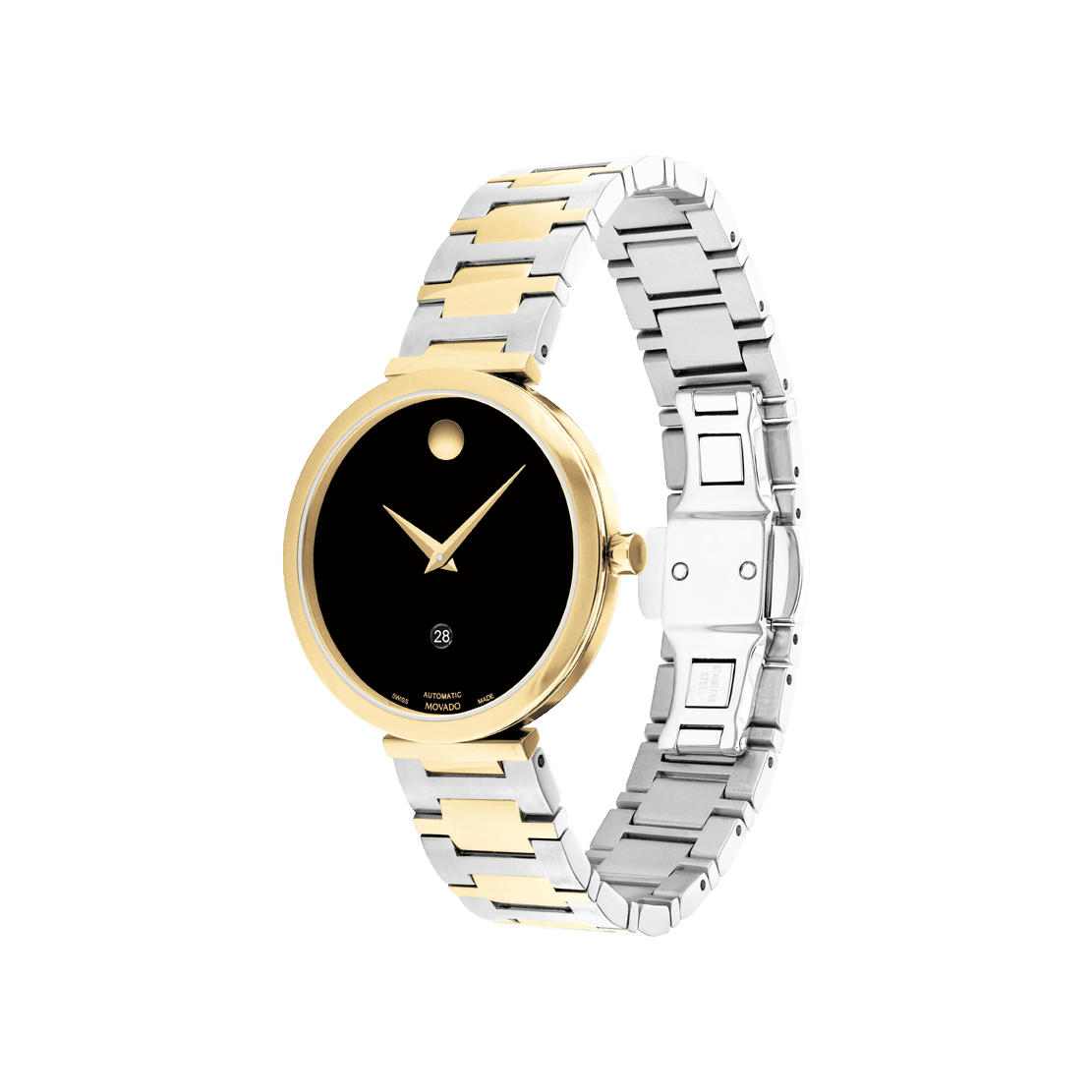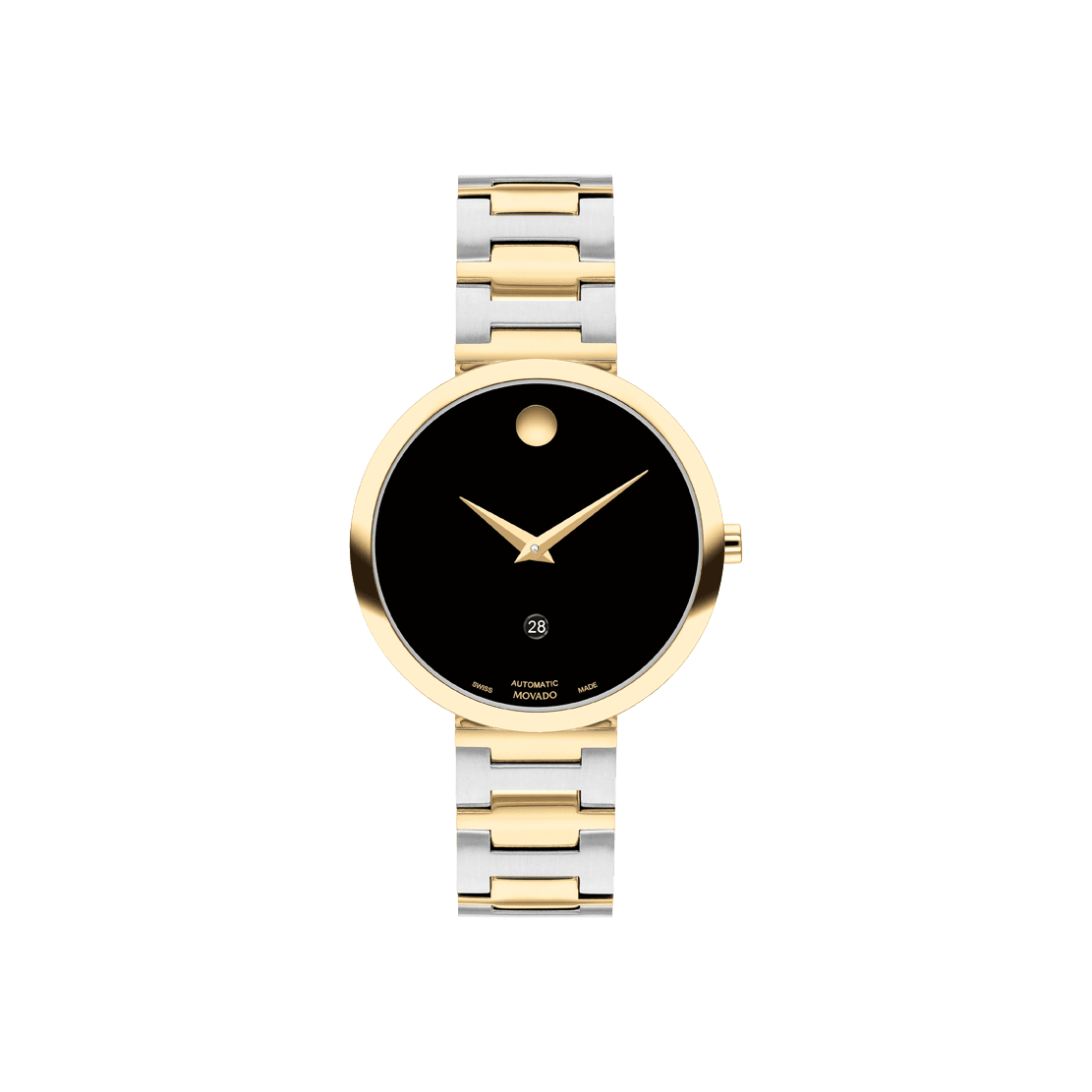 It’s time you owned a masterpiece. The Movado Museum Classic is an icon of modern design, featured in museums worldwide and renown for the elegant simplicity of the dial defined by a single dot at 12 o’clock, a design element that symbolizes the sun at high noon. We’ve elevated this iconic watch even further with an automatic movement powered by the motion of your body—the pinnacle of Swiss technical mastery and displayed in all its beauty with an exhibition caseback. In this style, we’ve paired a chic black dial—outfitted with our signature dot and slender hands—with a gleaming yellow gold PVD & stainless steel 32mm case and a sinuous H-link bracelet for maximum versatility.