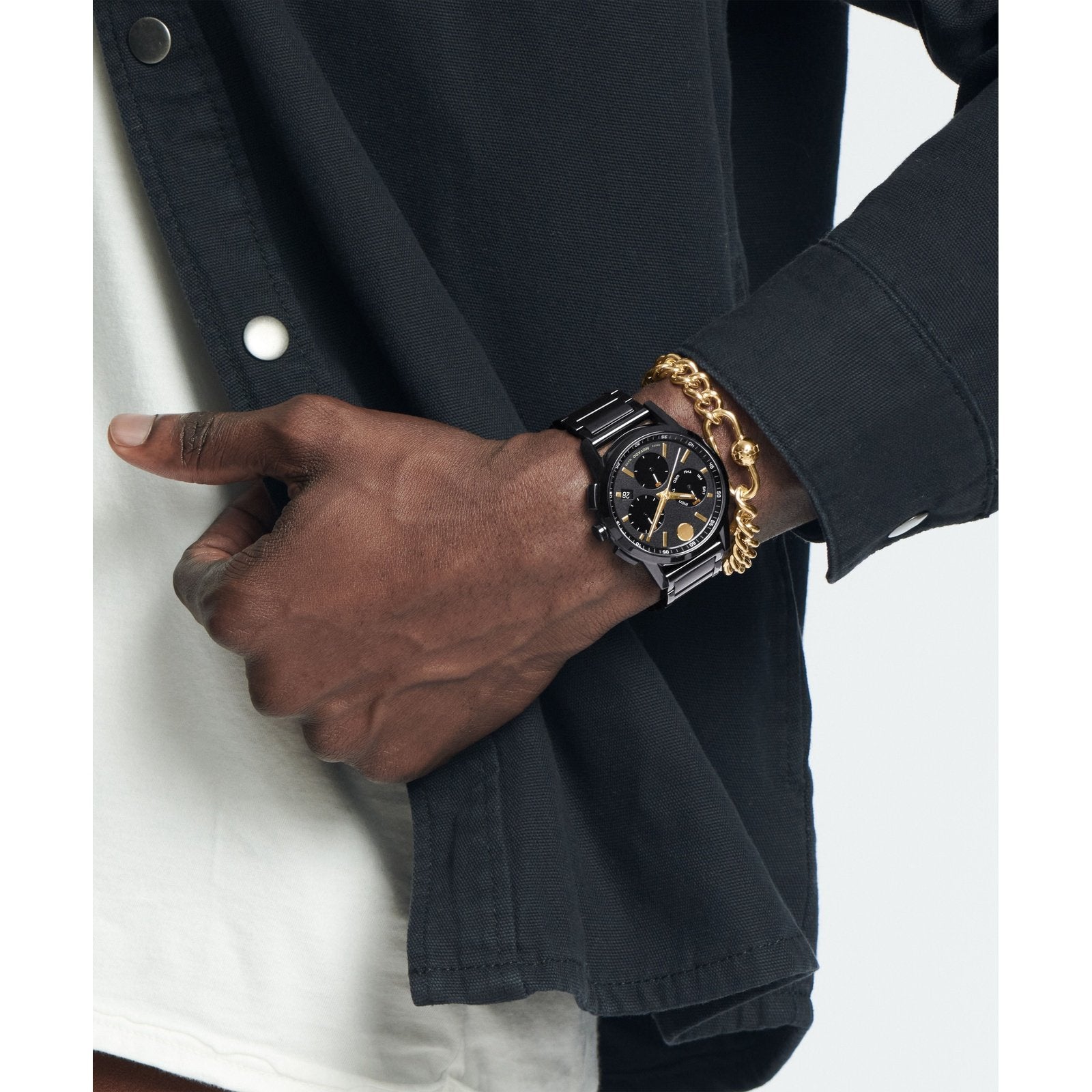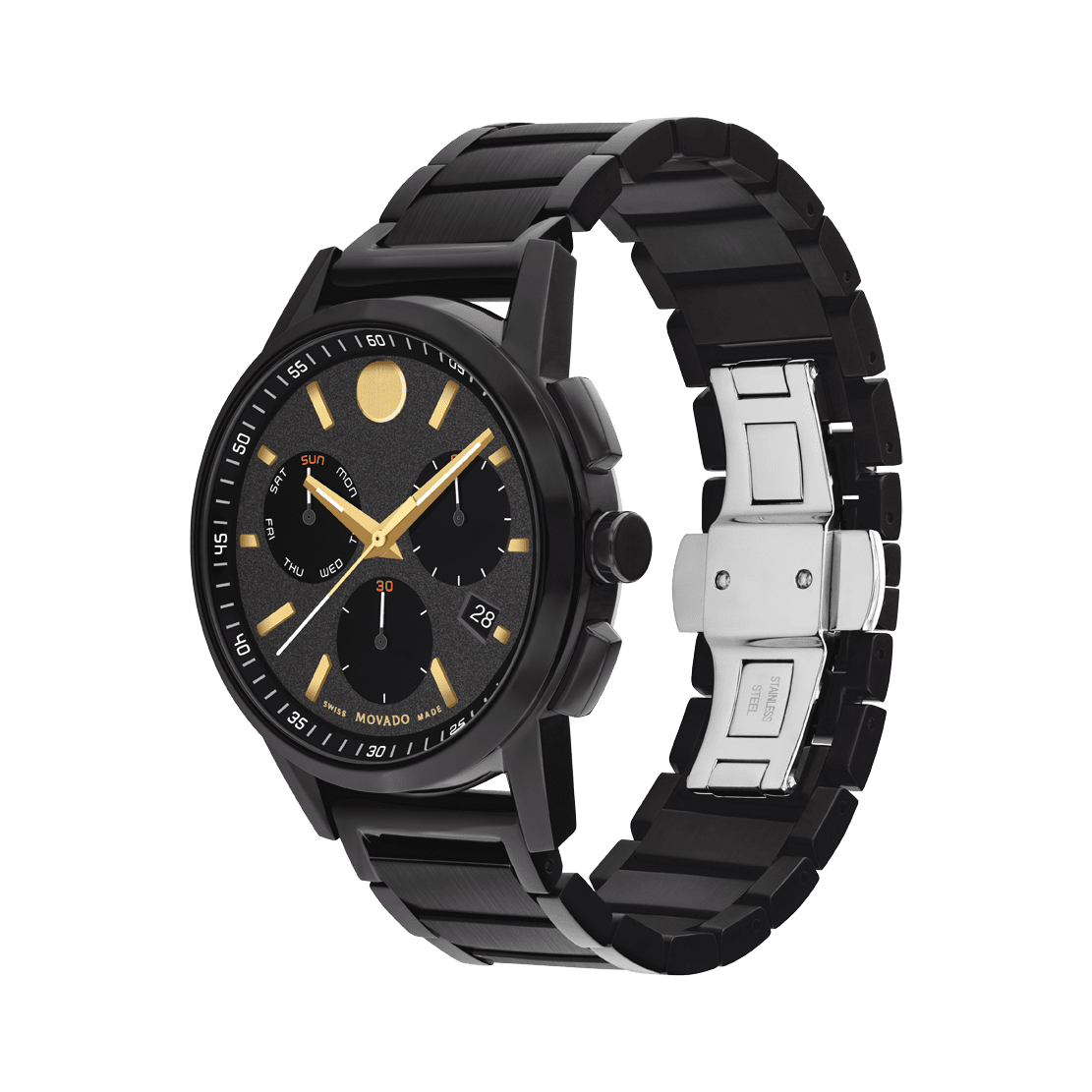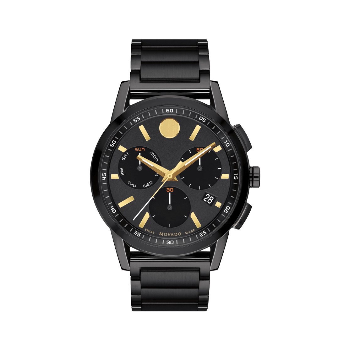 Iconic design meets sporty style. We’ve paired the modern aesthetics of our signature Museum Dial with sporty details to create the height of contemporary style. Crafted from rugged stainless steel with a rich black PVD finish, this watch boasts a 43mm case with a glossy black bezel. The matching black...