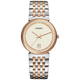 The harmonious design of the Rado Florence Classic calls to mind the elegant domes and towers of the city from which the collection takes its name. The 38 mm watch has an edge-to-edge-bevelled, curved sapphire crystal. The bracelet made of polished stainless steel with rose gold-coloured middle links completes the overall appearance of this classic timepiece. The brown sunray dial matches perfectly with the rose gold-coloured hands. Thanks to a three-hand calibre R073 quartz movement, the watch has greater accuracy and resistance to shocks. The watch is water resistant down to 50 m and is also available in S size, which makes this an ideal couples’ watch.