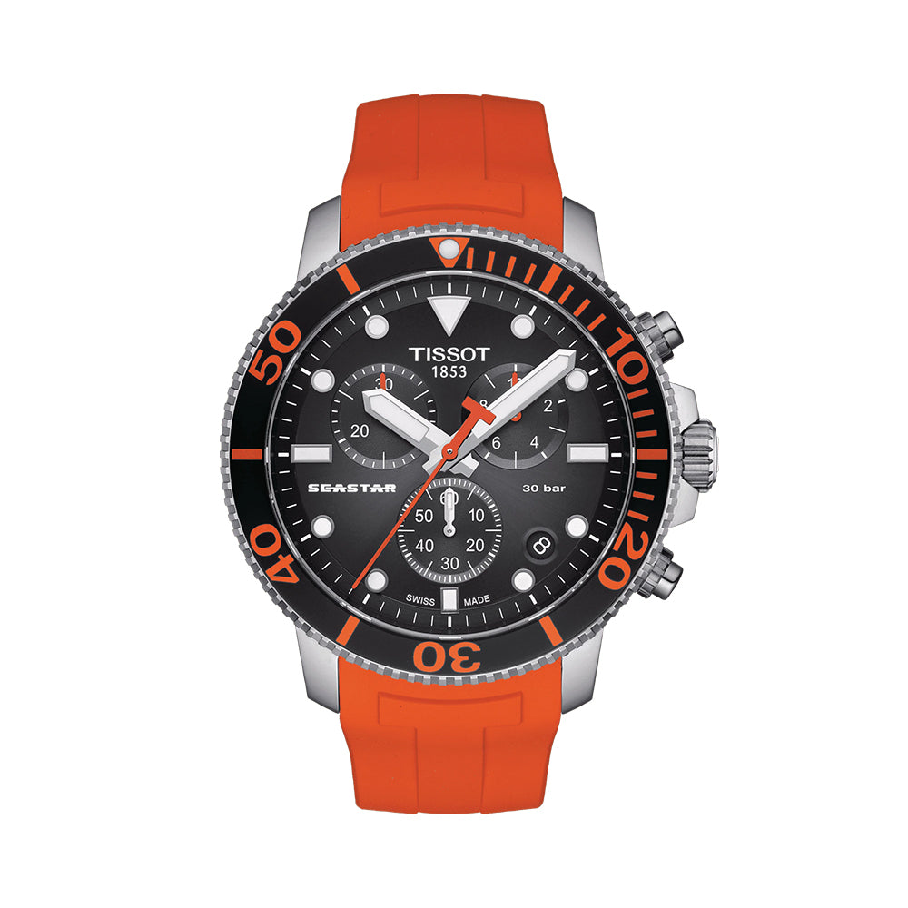 The Tissot Seastar 1000 merges style and performance without compromising either. The diving inspiration shapes both the appearance and the functionality of this watch. It maintains its performance to a pressure of 30 bar (300m/1'000ft), combining underwater sports and a preference for a sophisticated Swiss timepiece. The diving theme continues...
