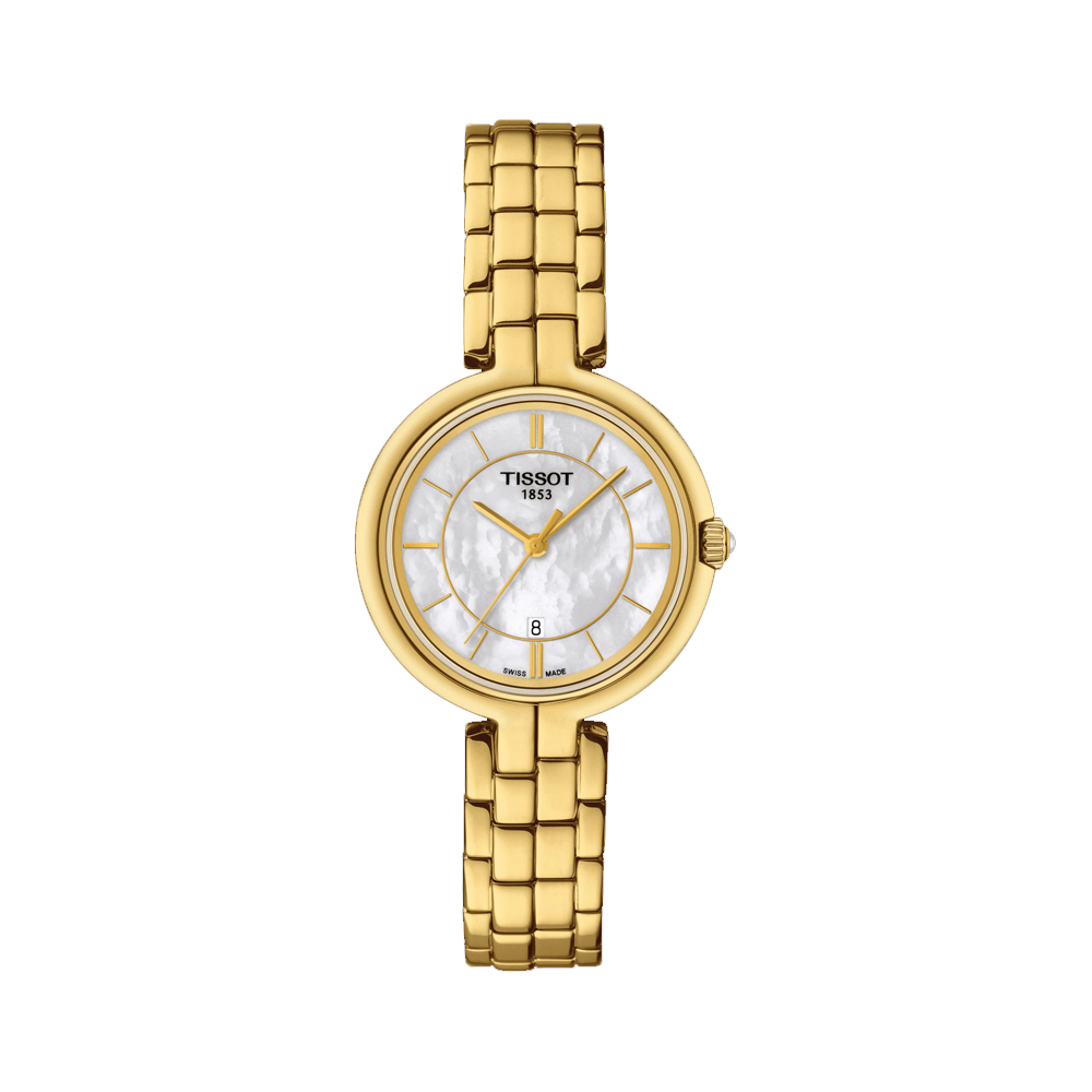 Tissot Flamingo T0942103311100 is a beautiful and eye-catching Ladies watch from T-Lady collection. Case material is PVD Gold plated, which stands for a high quality of the item and the Mother of pearl dial gives the watch that unique look. The features of the watch include (among others) a date...