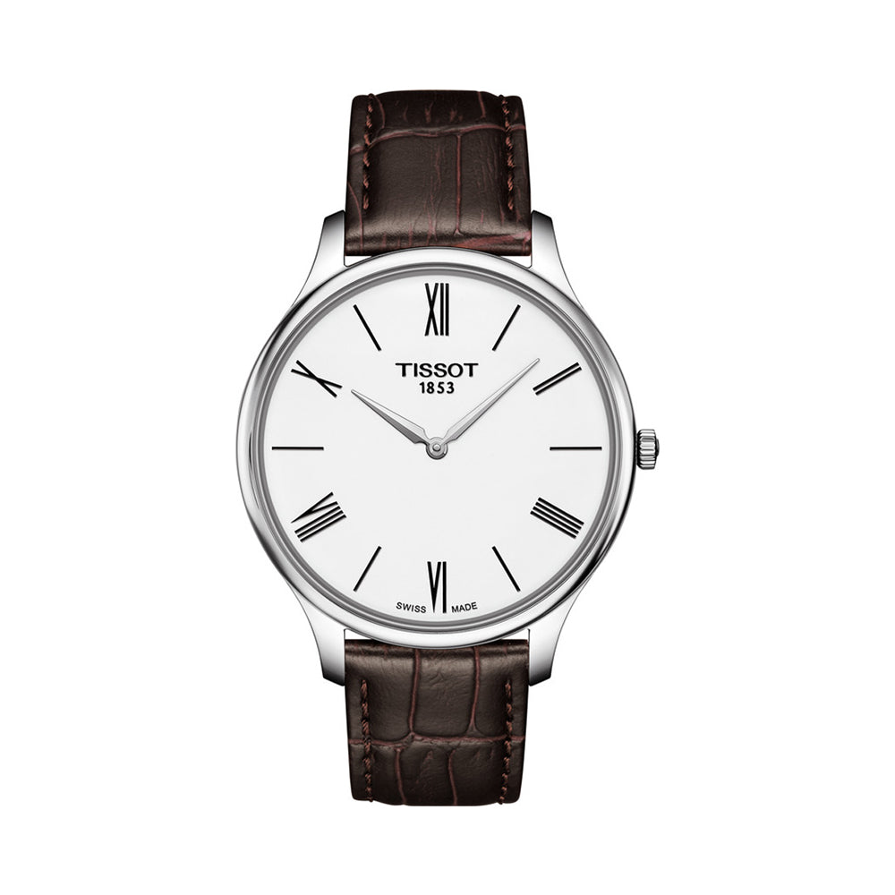 The Tissot Tradition family gives ultra-modern watchmaking a justified hint of nostalgia, giving today’s technology a vintage-style design signature. High-tech operation is perfectly balanced with classical details and subtle vintage-look finishes. These are complemented by design elements such as guilloche decoration and a gently curved case. The Tissot Tradition promises...