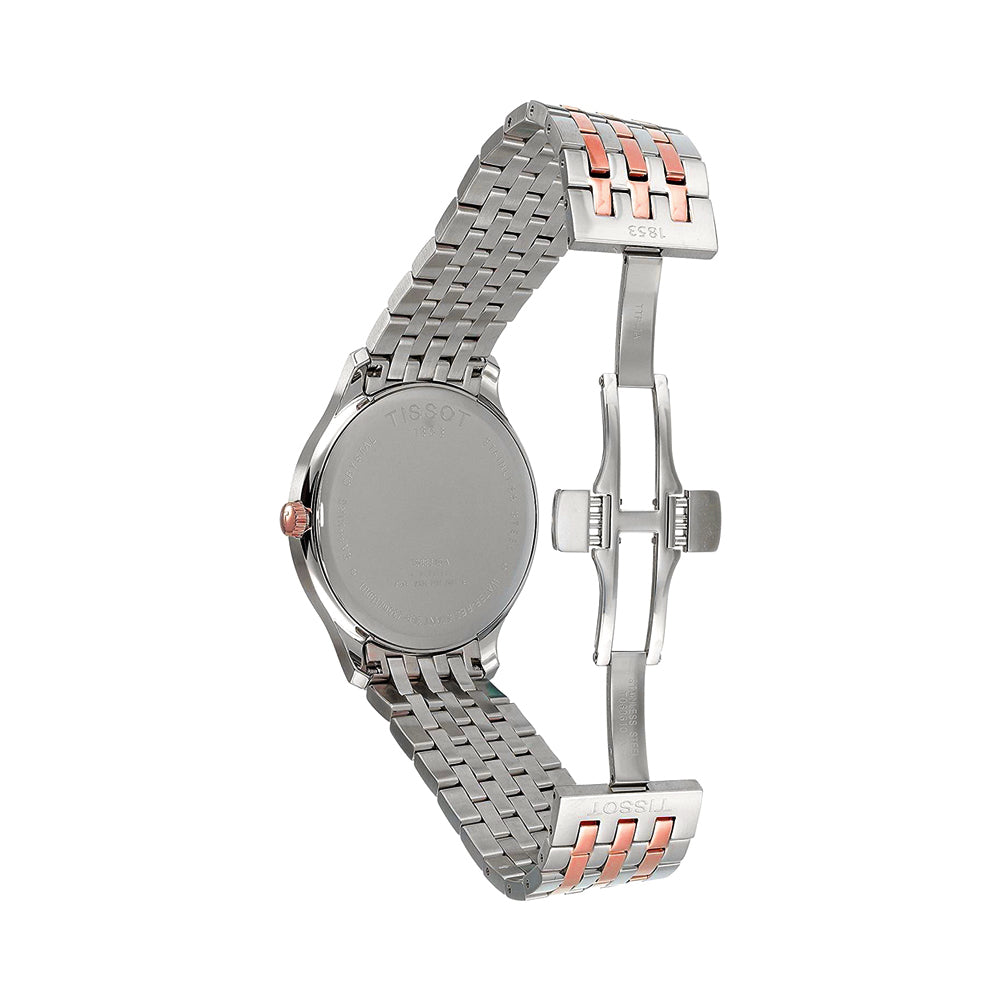 The Tissot Tradition family gives ultra-modern watchmaking a justified hint of nostalgia, giving today’s technology a vintage-style design signature. High-tech operation is perfectly balanced with classical details and subtle vintage-look finishes. These are complemented by design elements such as guilloche decoration and a gently curved case. The Tissot Tradition promises...
