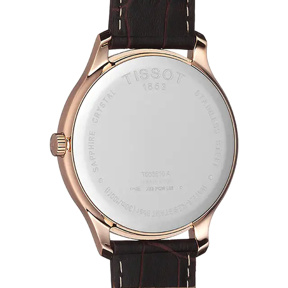 The Tissot Tradition family gives ultra-modern watchmaking a hint of nostalgia with a vintage-style perfectly balanced with classical details and subtle finishes. These are complemented by design elements such as guilloche decoration on bracelet models and a gently curved case. A classic men's watch that will remain timeless on the...