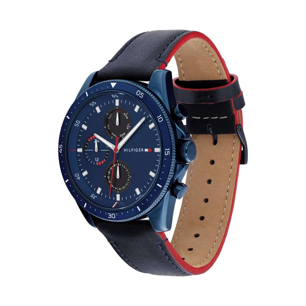 An ideal pick for every occasion, this watch from Tommy Hilfiger is sure to exude power with style. This chronograph watch features a dial with numerical indications, three-hand movement, Leather strap is the must-have collection in your casual wear wardrobe.