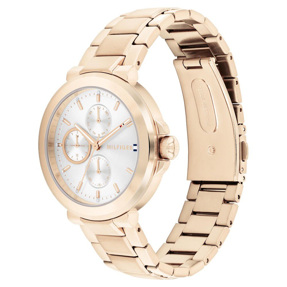 Tommy Hilfiger Multifunction Silver Dial Golden Color Stainless Steel Strap Watch For Women TH1782756