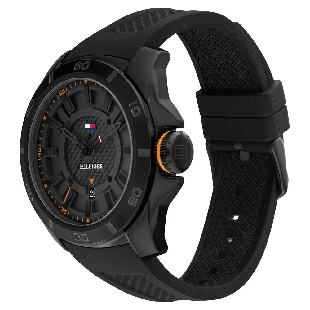 Tommy Hilfiger Quartz Analog with Date Black Dial Black Silicone Strap Watch for Men TH1792137