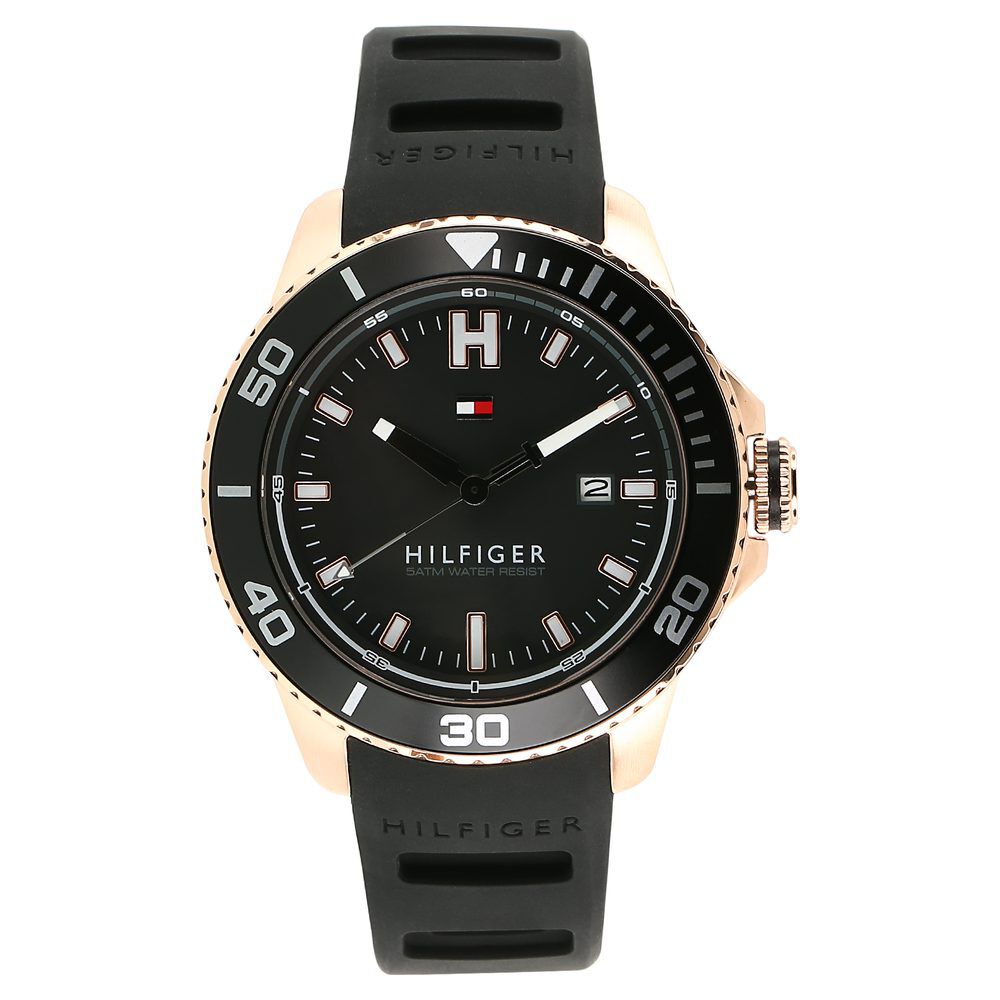 Tommy Hilfiger Quartz Analog with Date Black Dial Silicone Strap Watch for Men-NCTH1791266