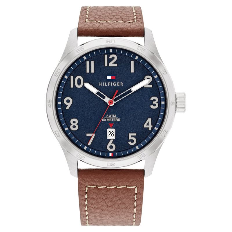 Tommy Hilfiger Quartz Analog With Date Blue Dial Leather Strap Watch For Men
